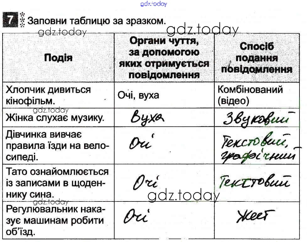 На страницах сайта gdz.today вы найдете учебный и вспомогательный материал, направленный на улучшения знаний школьной программы. ГДЗ - онлайн мир знаний Рішення до Способи подання повідомлень 7 Рабочей тетради по Информатике для 3 класса Коршунова Генеза 2014