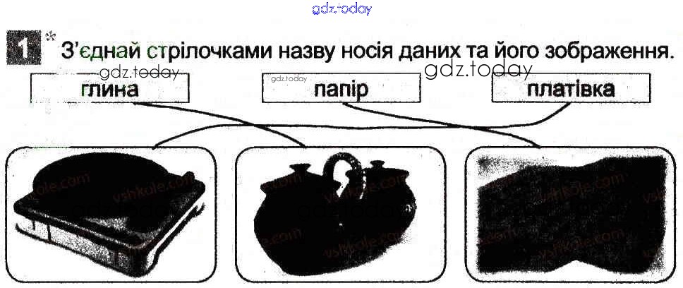 На страницах сайта gdz.today вы найдете учебный и вспомогательный материал, направленный на улучшения знаний школьной программы. ГДЗ - онлайн мир знаний Рішення до Носії повідомлень 1 Рабочей тетради по Информатике для 3 класса Коршунова Генеза 2014