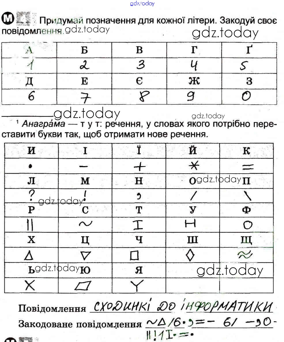 Ответы к Рішення до Поняття про символи та їх кодування 4 Рабочей тетради по Информатике для 3 класса Коршунова Генеза 2014