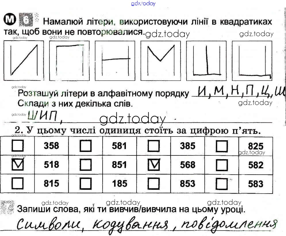 На страницах сайта gdz.today вы найдете учебный и вспомогательный материал, направленный на улучшения знаний школьной программы. ГДЗ - онлайн мир знаний Рішення до Поняття про символи та їх кодування 6 Рабочей тетради по Информатике для 3 класса Коршунова Генеза 2014