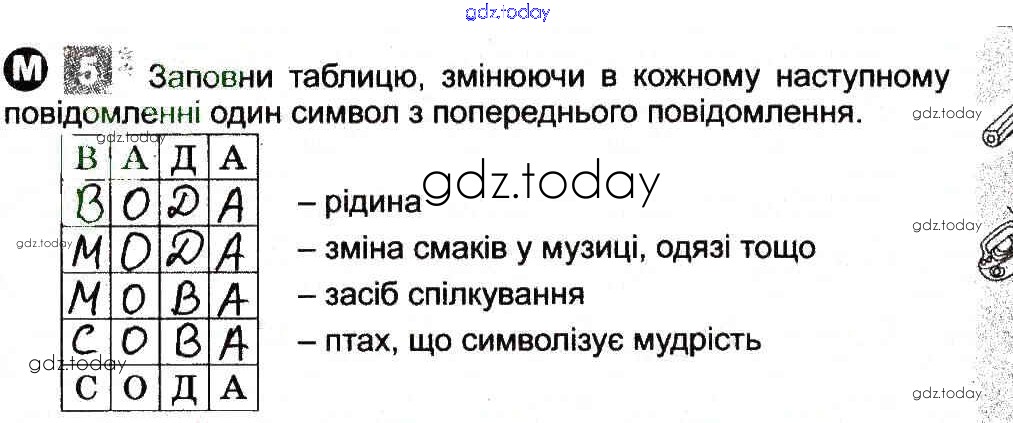 На страницах сайта gdz.today вы найдете учебный и вспомогательный материал, направленный на улучшения знаний школьной программы. ГДЗ - онлайн мир знаний Рішення до Загадкові повідомлення 5 Рабочей тетради по Информатике для 3 класса Коршунова Генеза 2014