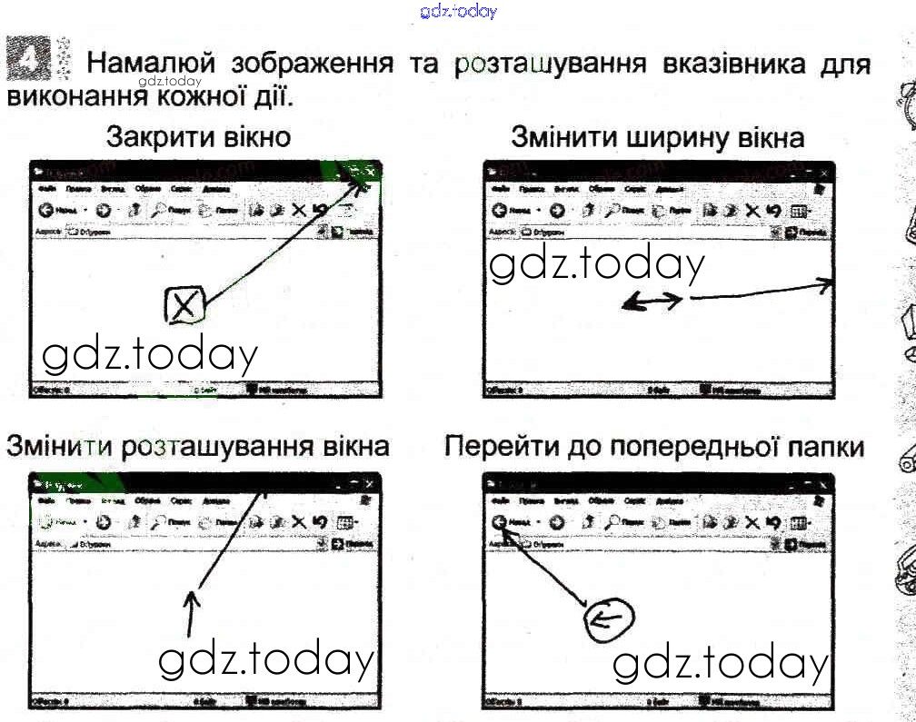 На страницах сайта gdz.today вы найдете учебный и вспомогательный материал, направленный на улучшения знаний школьной программы. ГДЗ - онлайн мир знаний Рішення до Вікна 4 Рабочей тетради по Информатике для 3 класса Коршунова Генеза 2014