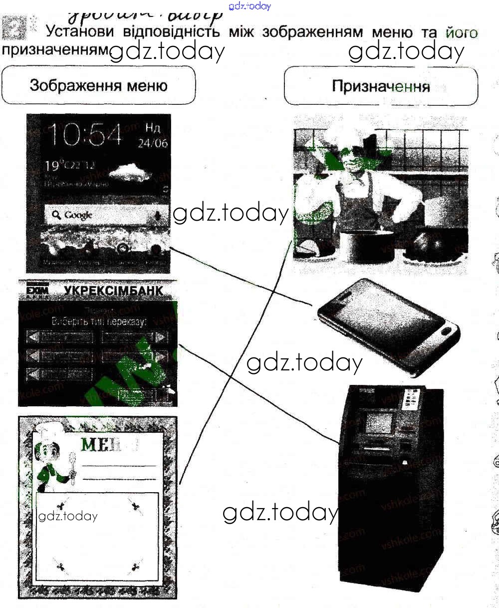 На страницах сайта gdz.today вы найдете учебный и вспомогательный материал, направленный на улучшения знаний школьной программы. ГДЗ - онлайн мир знаний Рішення до Меню 2 Рабочей тетради по Информатике для 3 класса Коршунова Генеза 2014