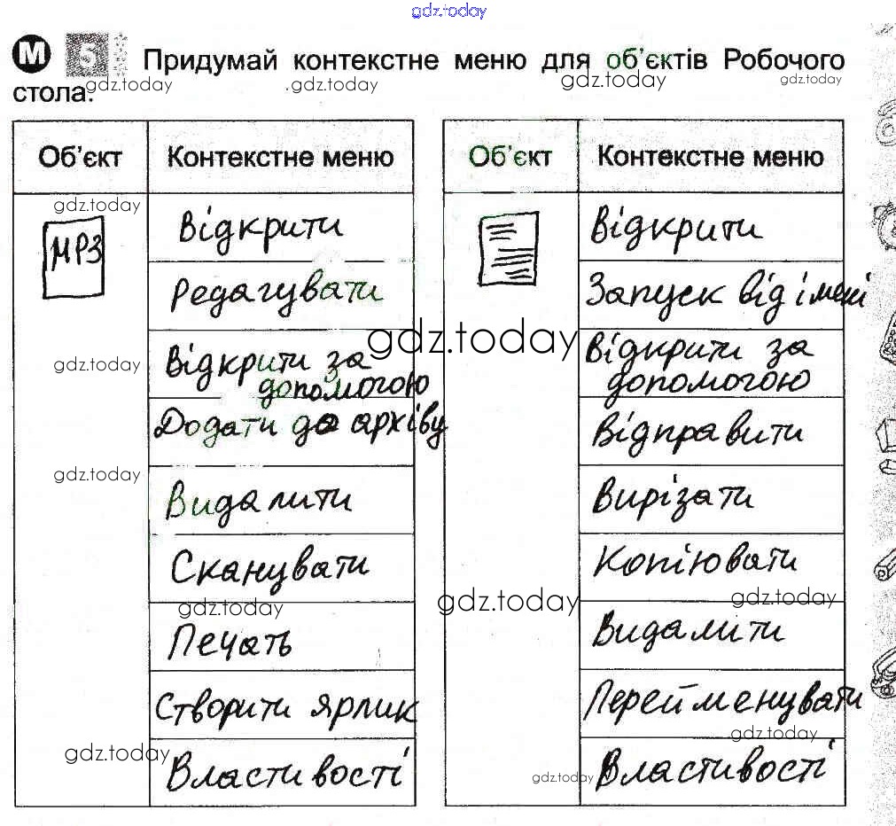 На страницах сайта gdz.today вы найдете учебный и вспомогательный материал, направленный на улучшения знаний школьной программы. ГДЗ - онлайн мир знаний Рішення до Меню 5 Рабочей тетради по Информатике для 3 класса Коршунова Генеза 2014