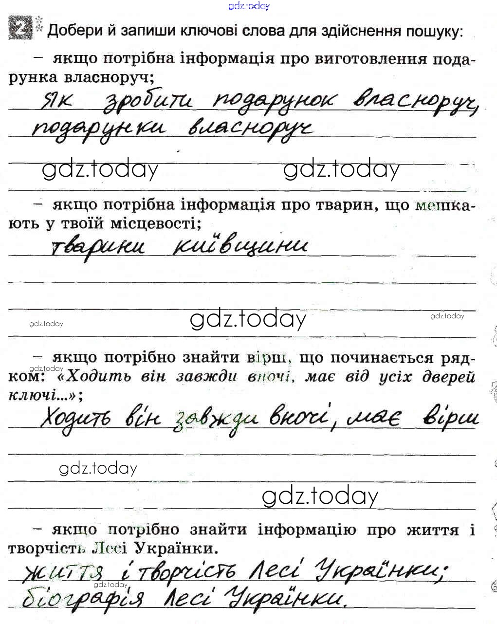 На страницах сайта gdz.today вы найдете учебный и вспомогательный материал, направленный на улучшения знаний школьной программы. ГДЗ - онлайн мир знаний Рішення до Правила пошуку даних в Інтернеті 2 Рабочей тетради по Информатике для 3 класса Коршунова Генеза 2014