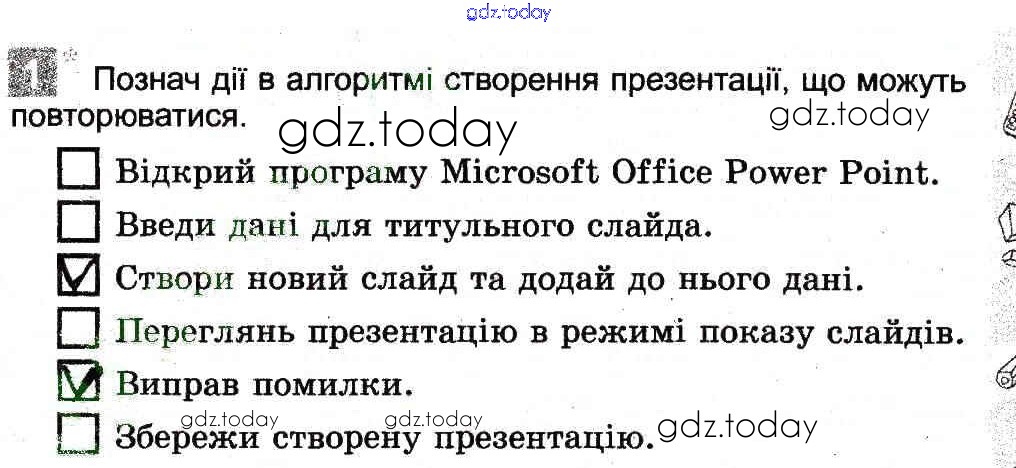 На страницах сайта gdz.today вы найдете учебный и вспомогательный материал, направленный на улучшения знаний школьной программы. ГДЗ - онлайн мир знаний Рішення до Створюємо презентацію 1 Рабочей тетради по Информатике для 3 класса Коршунова Генеза 2014