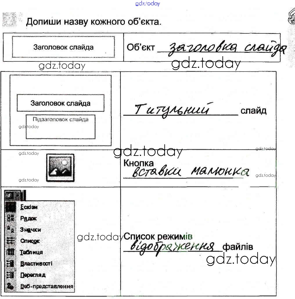 На страницах сайта gdz.today вы найдете учебный и вспомогательный материал, направленный на улучшения знаний школьной программы. ГДЗ - онлайн мир знаний Рішення до Створюємо презентацію 2 Рабочей тетради по Информатике для 3 класса Коршунова Генеза 2014