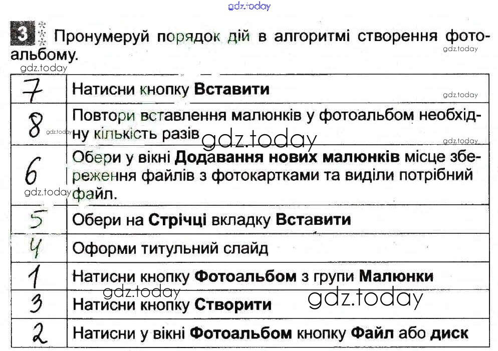 На страницах сайта gdz.today вы найдете учебный и вспомогательный материал, направленный на улучшения знаний школьной программы. ГДЗ - онлайн мир знаний Рішення до Створення фотоальбому 3 Рабочей тетради по Информатике для 3 класса Коршунова Генеза 2014