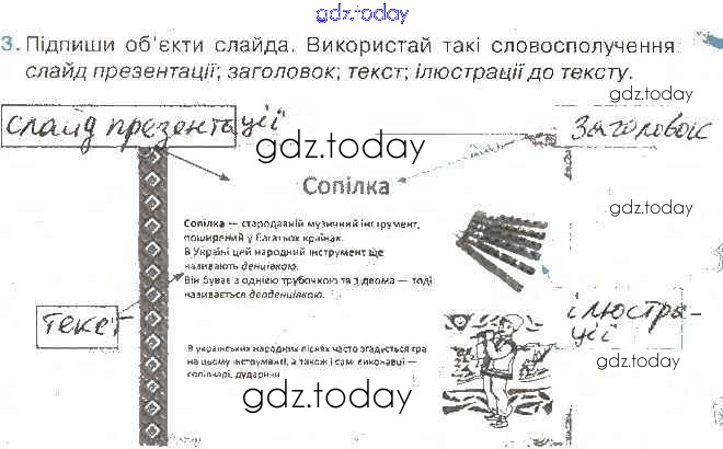На страницах сайта gdz.today вы найдете учебный и вспомогательный материал, направленный на улучшения знаний школьной программы. ГДЗ - онлайн мир знаний Рішення до Теми 22 Рабочей тетради по Информатике для 3 класса Ломаковская, Проценко Освiта 2017