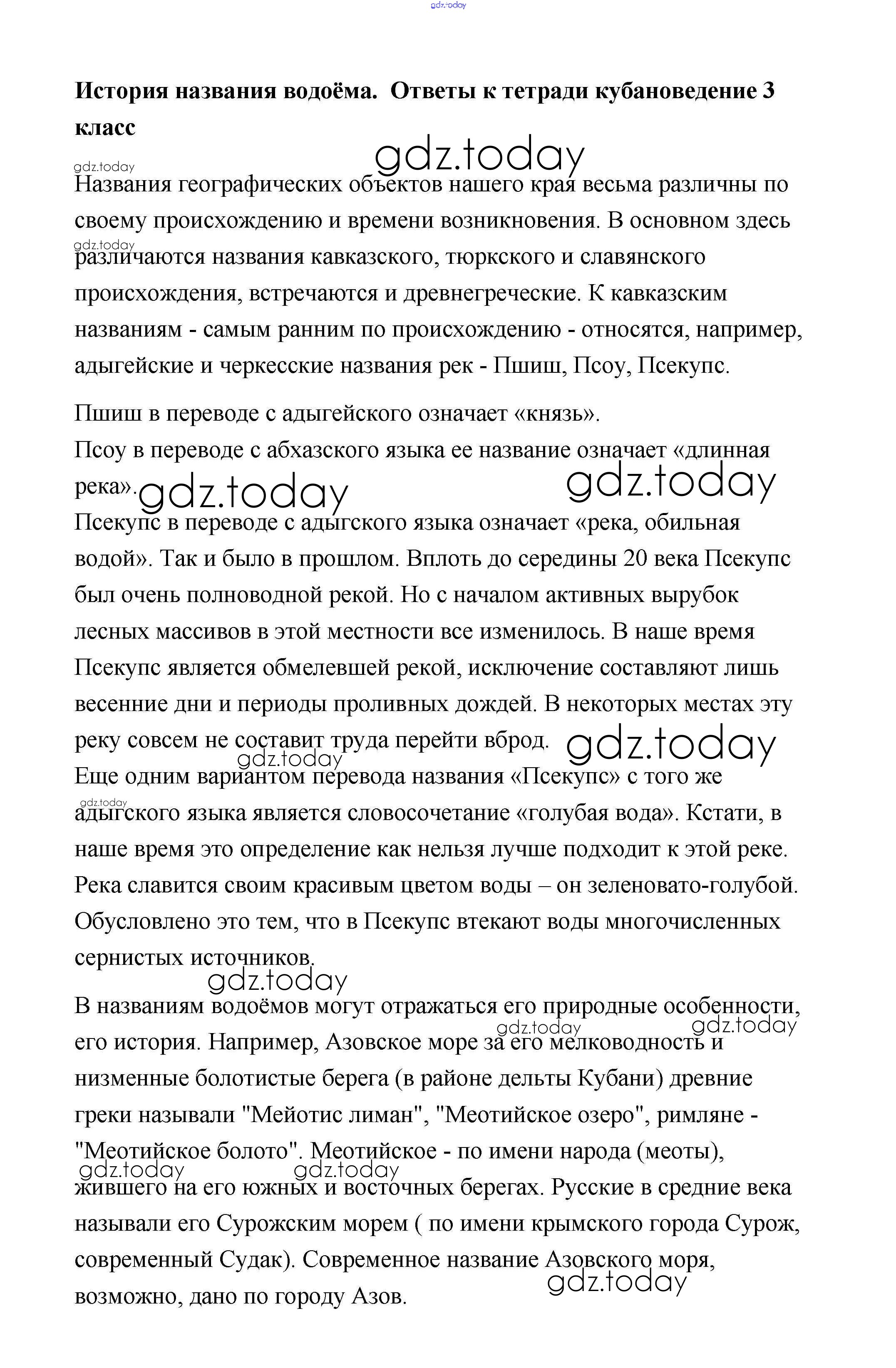 На страницах сайта gdz.today вы найдете учебный и вспомогательный материал, направленный на улучшения знаний школьной программы. ГДЗ - онлайн мир знаний Решение. Темы История названия водоёма Рабочей тетради по Кубановедению для 3 класса Науменко Перспективы образования 2017