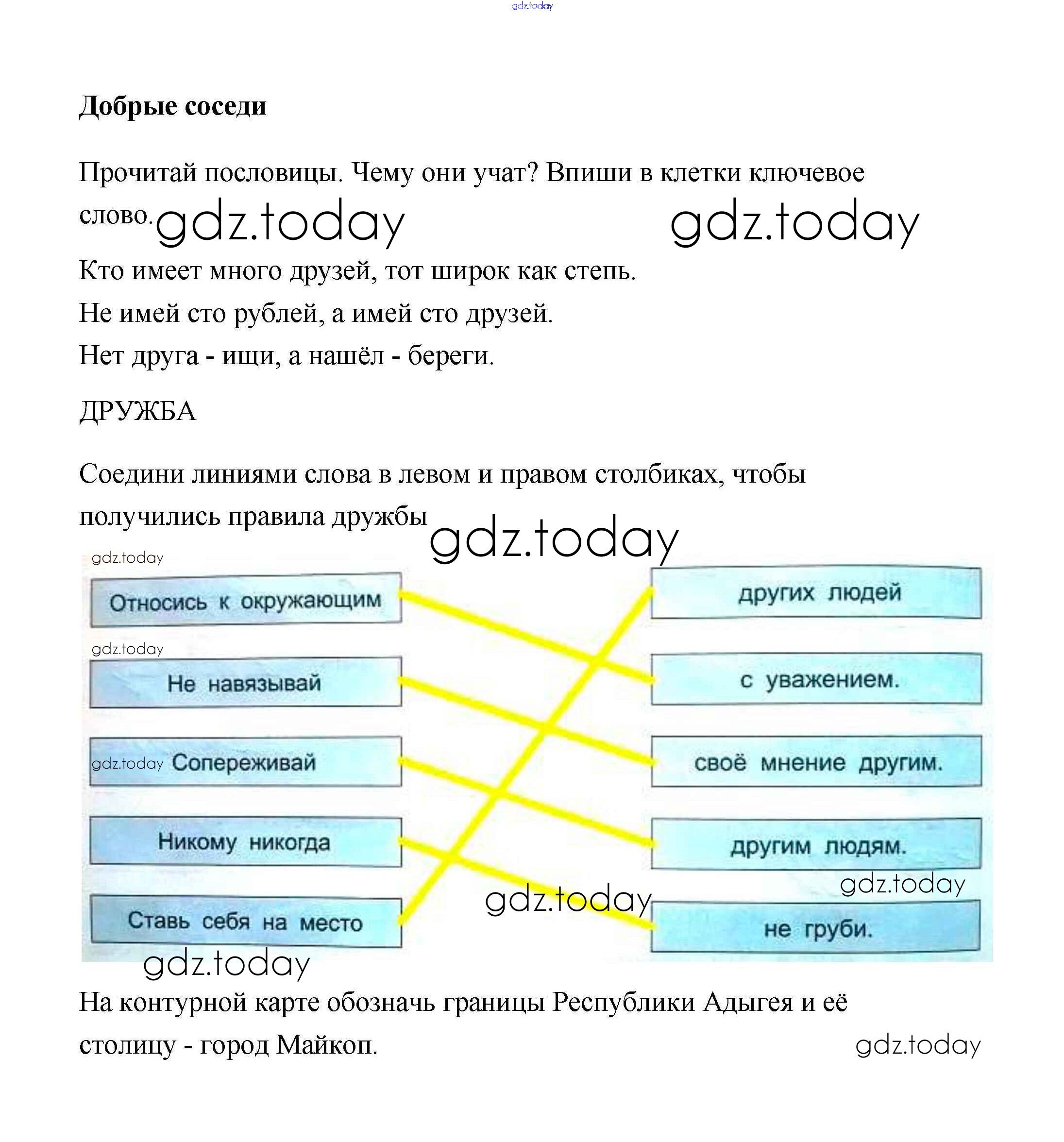 На страницах сайта gdz.today вы найдете учебный и вспомогательный материал, направленный на улучшения знаний школьной программы. ГДЗ - онлайн мир знаний Решение. Темы Добрые соседи Рабочей тетради по Кубановедению для 3 класса Науменко Перспективы образования 2017