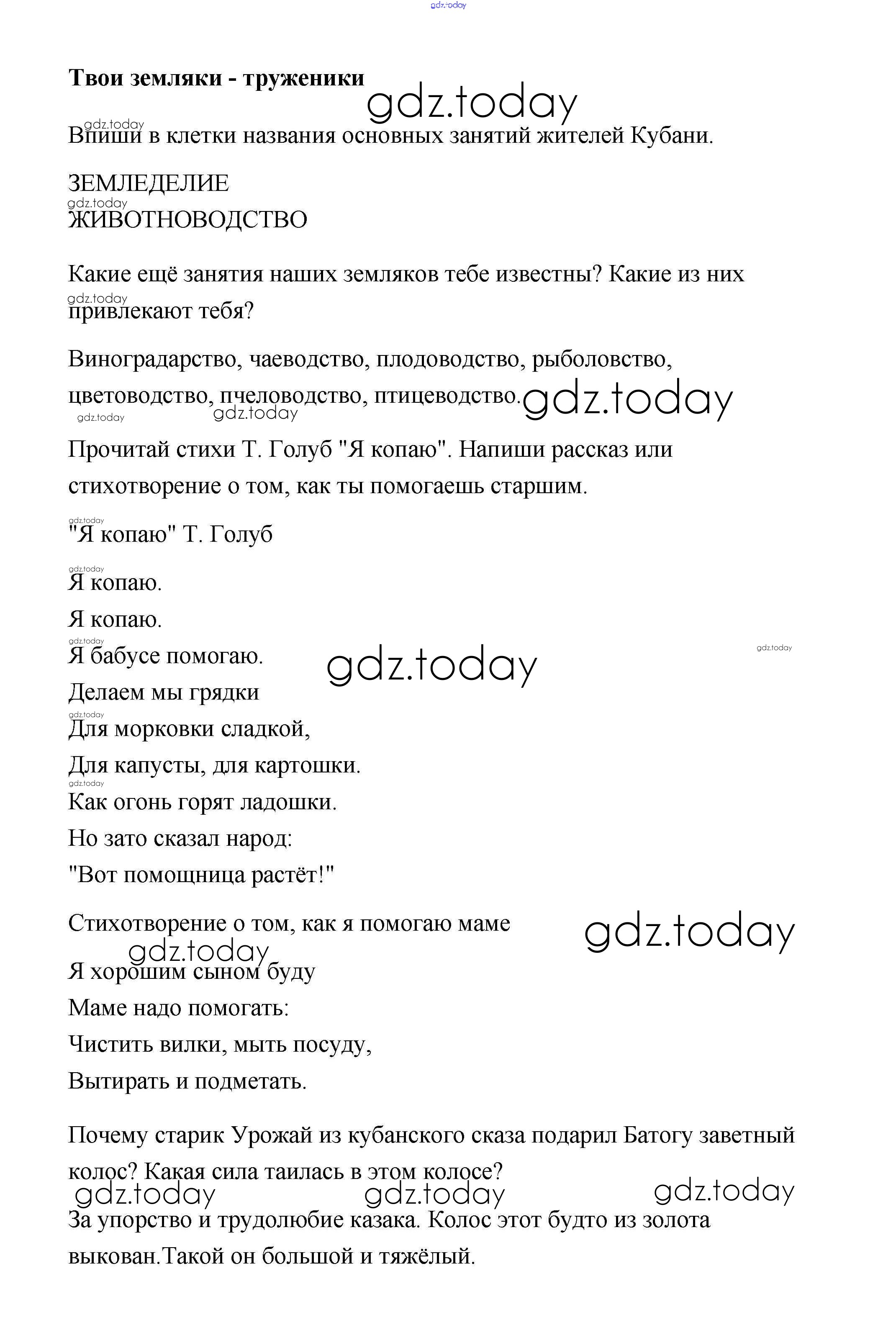На страницах сайта gdz.today вы найдете учебный и вспомогательный материал, направленный на улучшения знаний школьной программы. ГДЗ - онлайн мир знаний Решение. Темы Твои земляки - труженики Рабочей тетради по Кубановедению для 3 класса Науменко Перспективы образования 2017