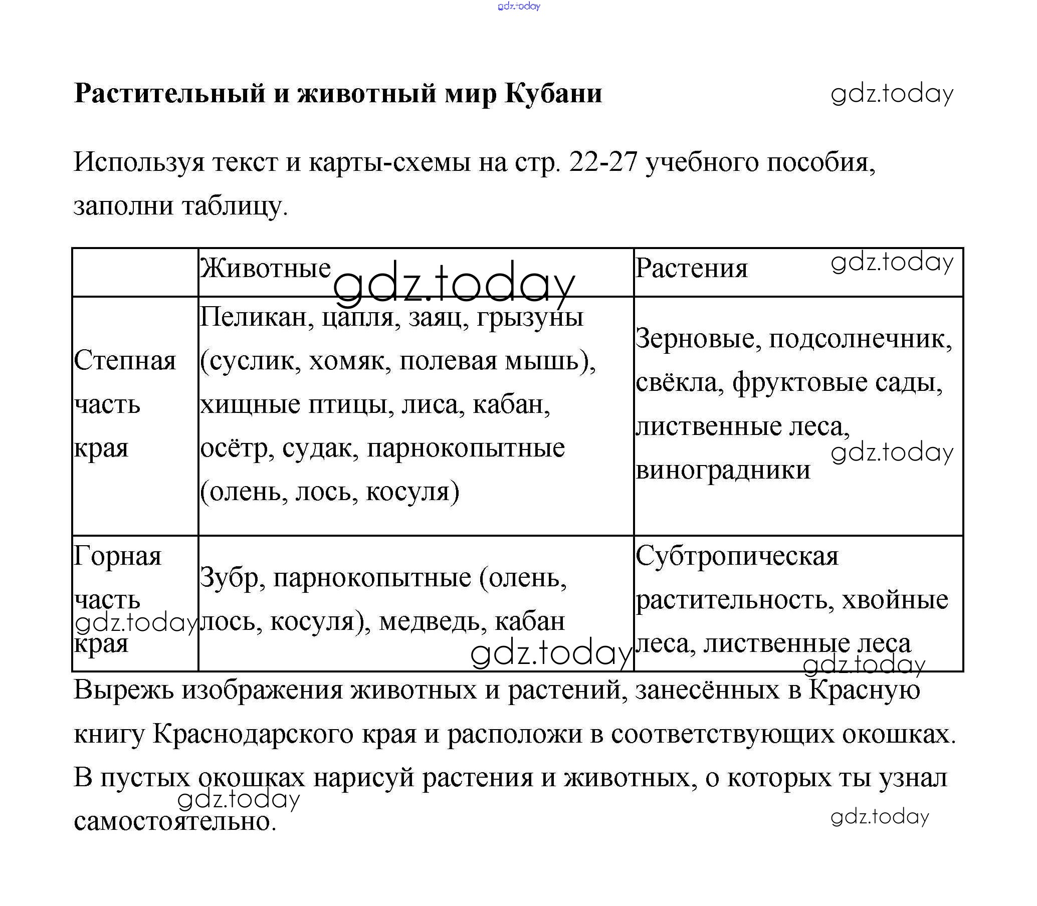 На страницах сайта gdz.today вы найдете учебный и вспомогательный материал, направленный на улучшения знаний школьной программы. ГДЗ - онлайн мир знаний Решение. Темы Растительный и животный мир Кубани Рабочей тетради по Кубановедению для 3 класса Науменко Перспективы образования 2017