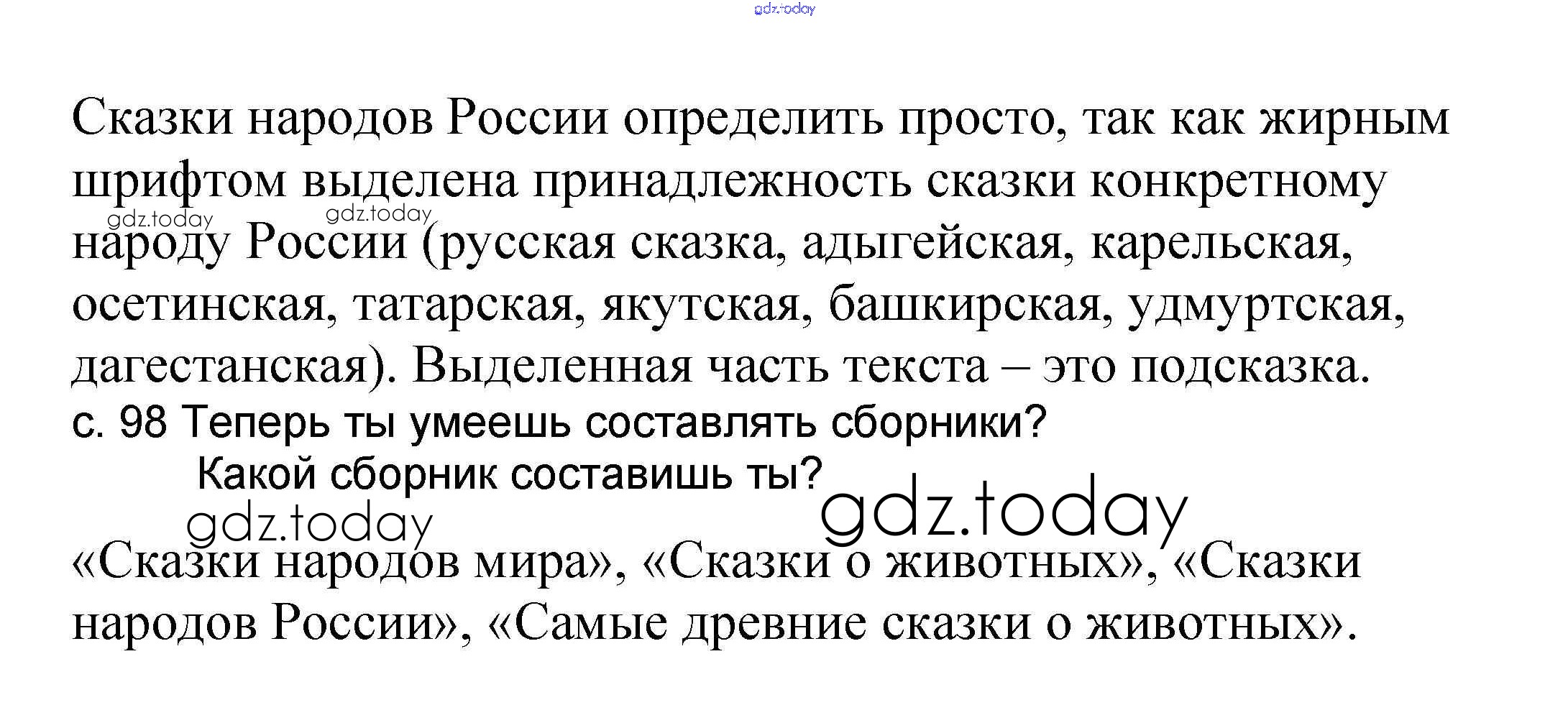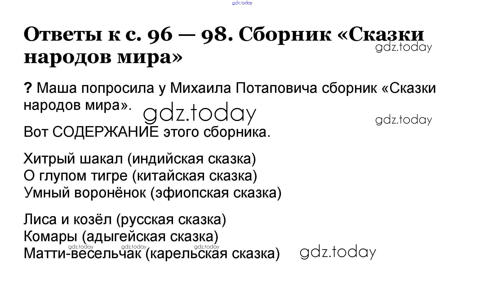 На страницах сайта gdz.today вы найдете учебный и вспомогательный материал, направленный на улучшения знаний школьной программы. ГДЗ - онлайн мир знаний Глава 2. Страницы Решение к части 1 96-98 Учебнику по Литературному чтению для 3 класса Чуракова Академкнига Перспективная начальная школа 2017