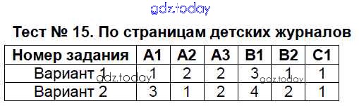 Ответы к Решение к тестам 15 Контрольно-измерительным материалам (КИМ) по Литературному чтению для 3 класса Шубина Экзамен 2017