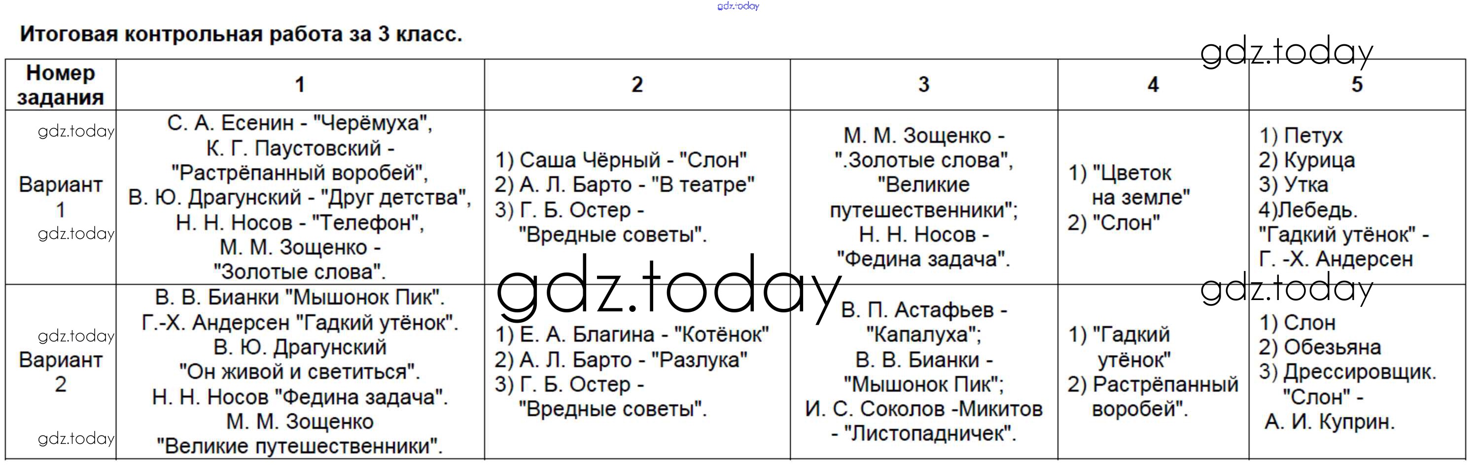 На страницах сайта gdz.today вы найдете учебный и вспомогательный материал, направленный на улучшения знаний школьной программы. ГДЗ - онлайн мир знаний Решение к итоговой работе 1 Контрольно-измерительным материалам (КИМ) по Литературному чтению для 3 класса Шубина Экзамен 2017