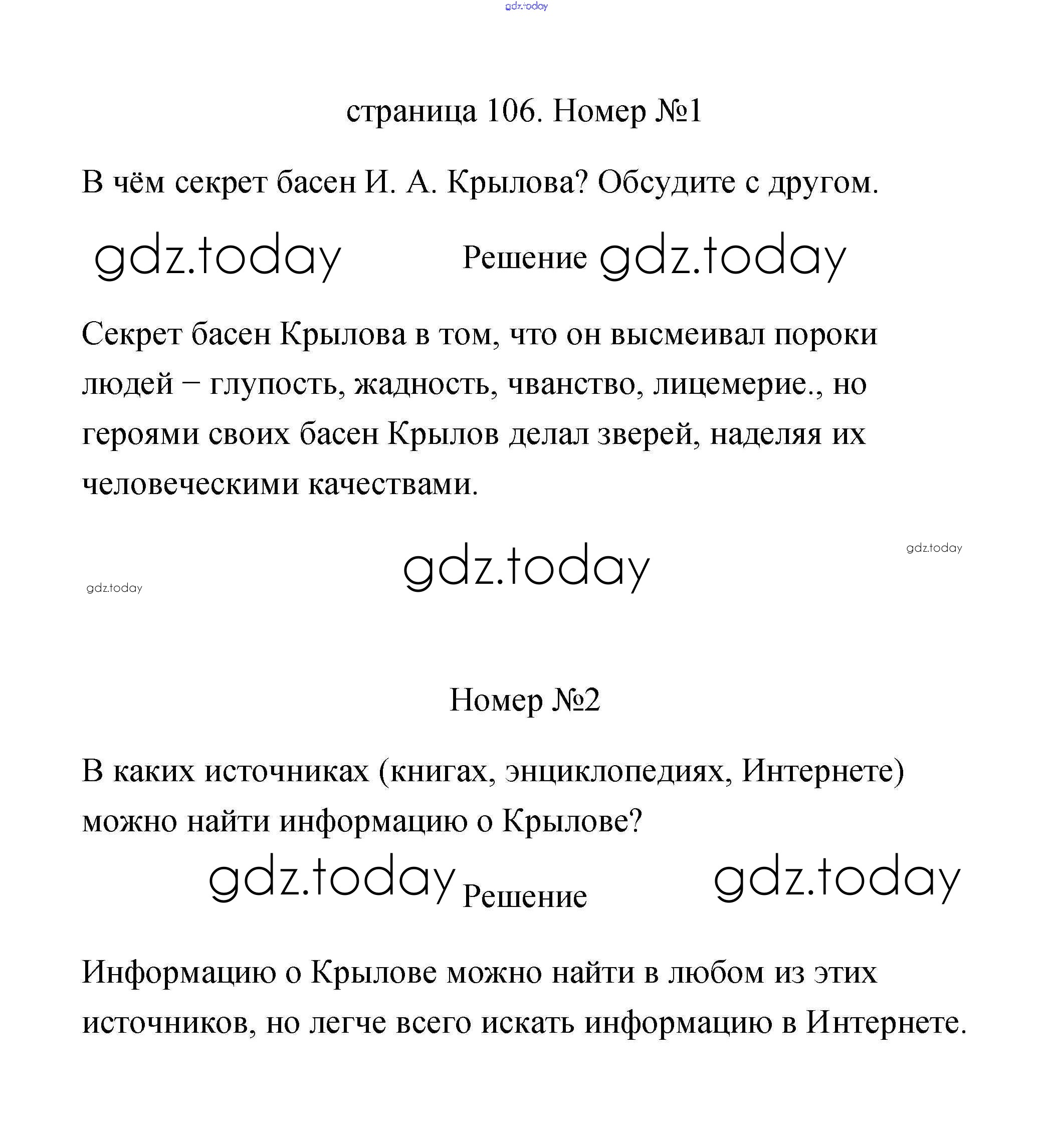 На страницах сайта gdz.today вы найдете учебный и вспомогательный материал, направленный на улучшения знаний школьной программы. ГДЗ - онлайн мир знаний Ршение к части 1 (Страницы) 106 Учебнику по Литературному чтению для 3 класса Климанова, Горецкий Просвещение Школа России 2020