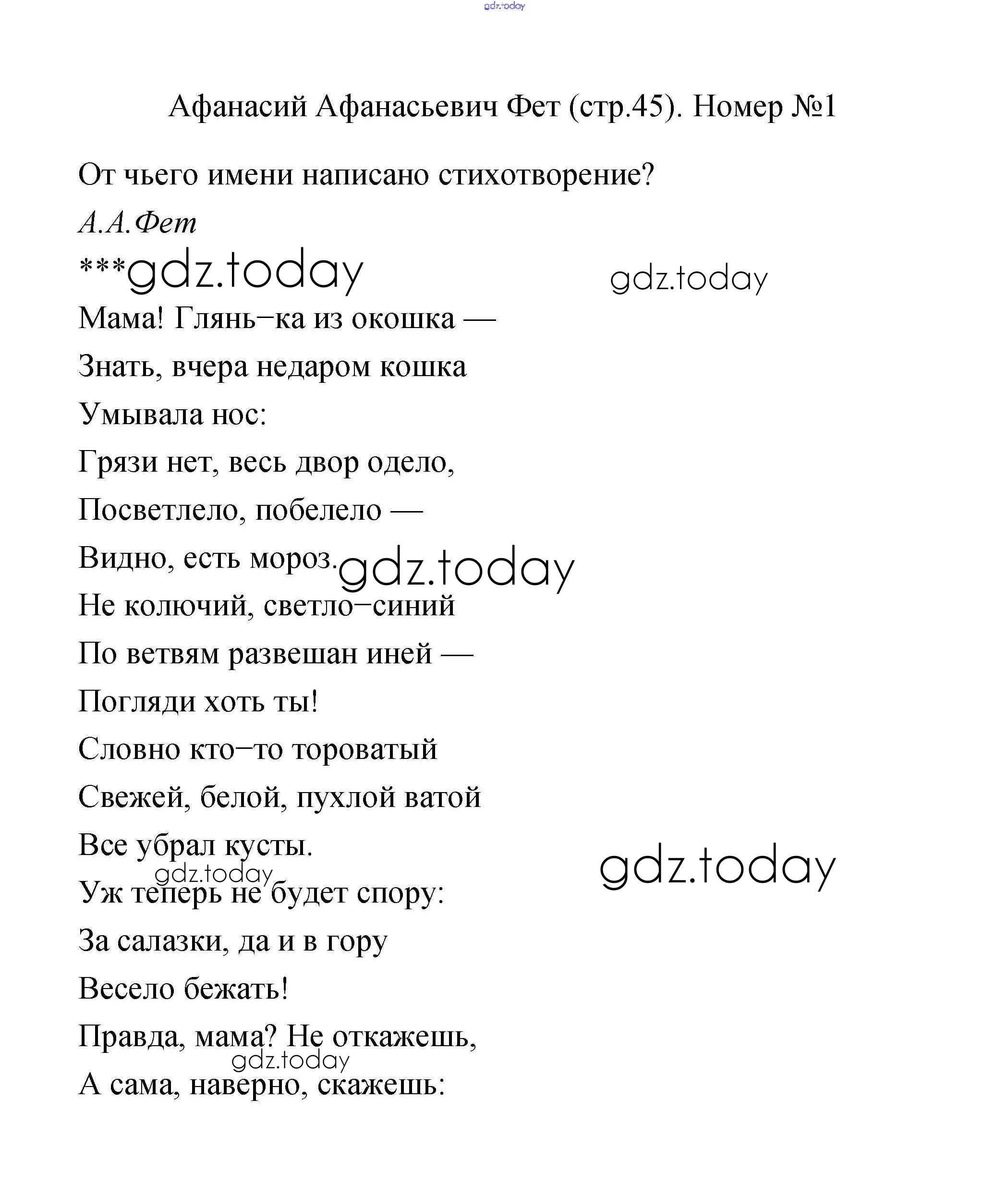 На страницах сайта gdz.today вы найдете учебный и вспомогательный материал, направленный на улучшения знаний школьной программы. ГДЗ - онлайн мир знаний Ршение к части 1 (Страницы) 45 Учебнику по Литературному чтению для 3 класса Климанова, Горецкий Просвещение Школа России 2020
