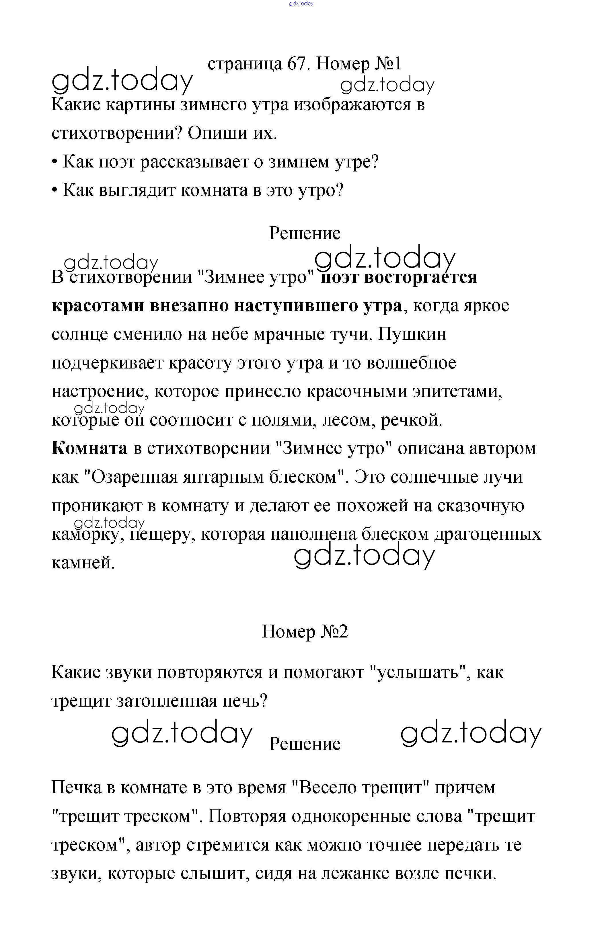 На страницах сайта gdz.today вы найдете учебный и вспомогательный материал, направленный на улучшения знаний школьной программы. ГДЗ - онлайн мир знаний Ршение к части 1 (Страницы) 67 Учебнику по Литературному чтению для 3 класса Климанова, Горецкий Просвещение Школа России 2020