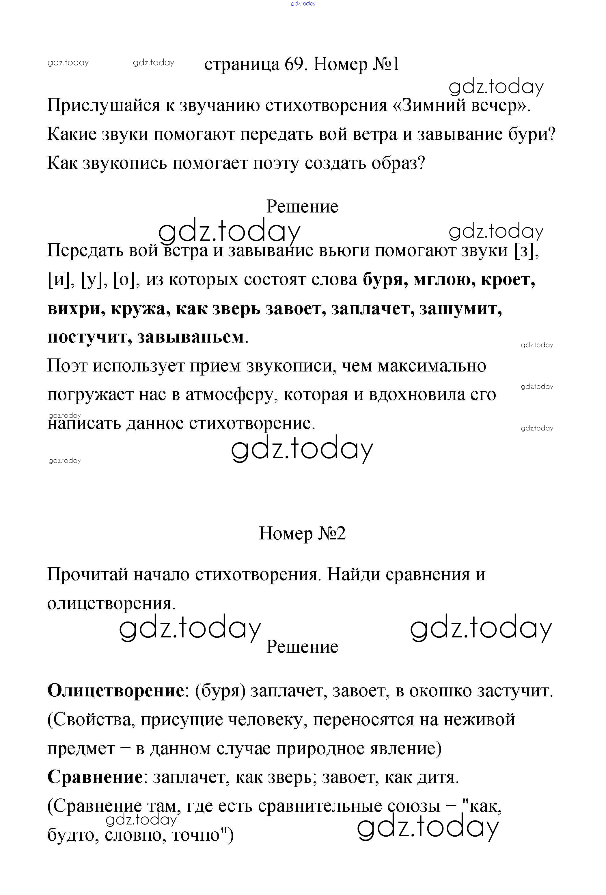 Ответы к Ршение к части 1 (Страницы) 69 Учебнику по Литературному чтению для 3 класса Климанова, Горецкий Просвещение Школа России 2020