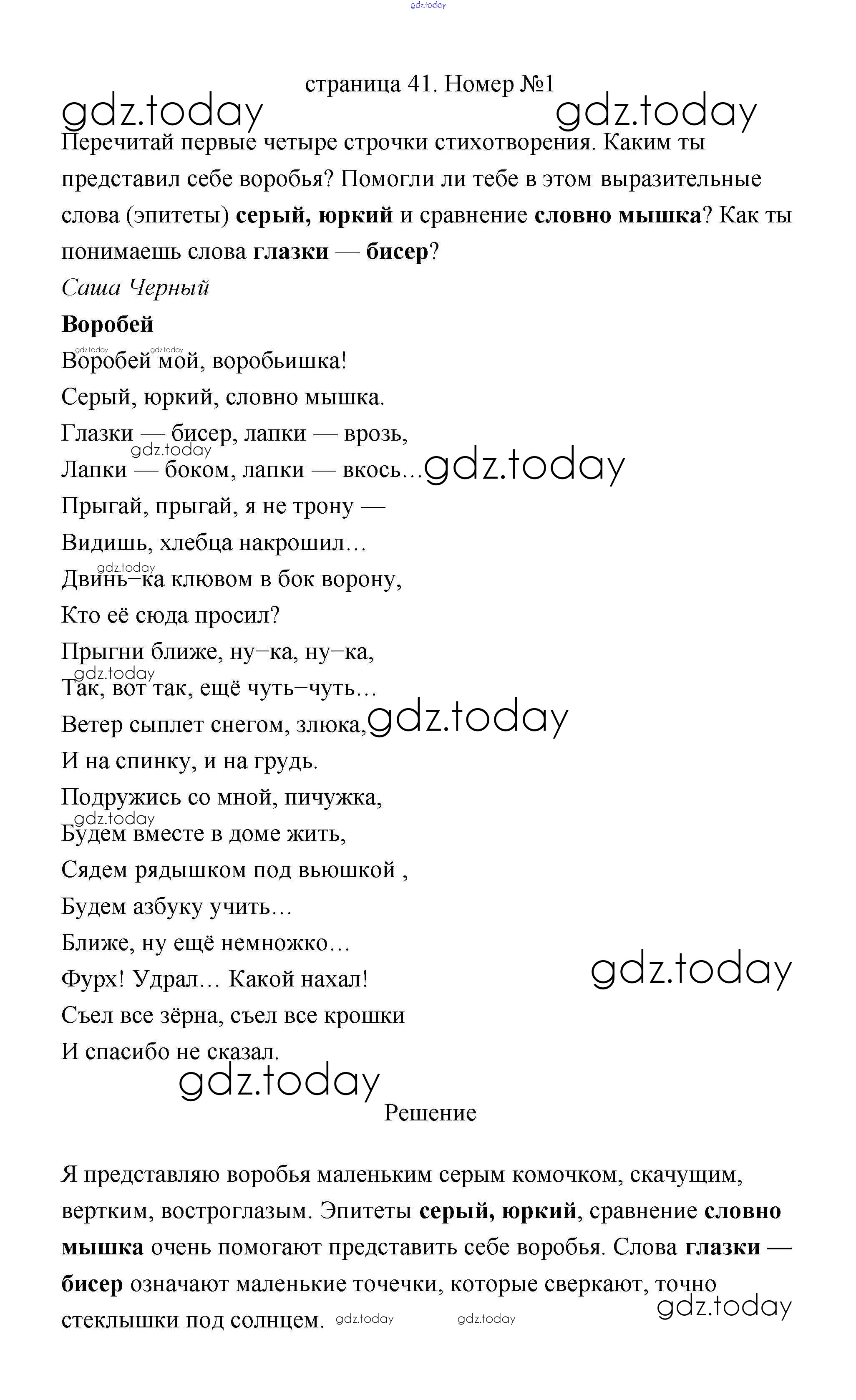 На страницах сайта gdz.today вы найдете учебный и вспомогательный материал, направленный на улучшения знаний школьной программы. ГДЗ - онлайн мир знаний Ршение к части 2 (Страницы) 41 Учебнику по Литературному чтению для 3 класса Климанова, Горецкий Просвещение Школа России 2020