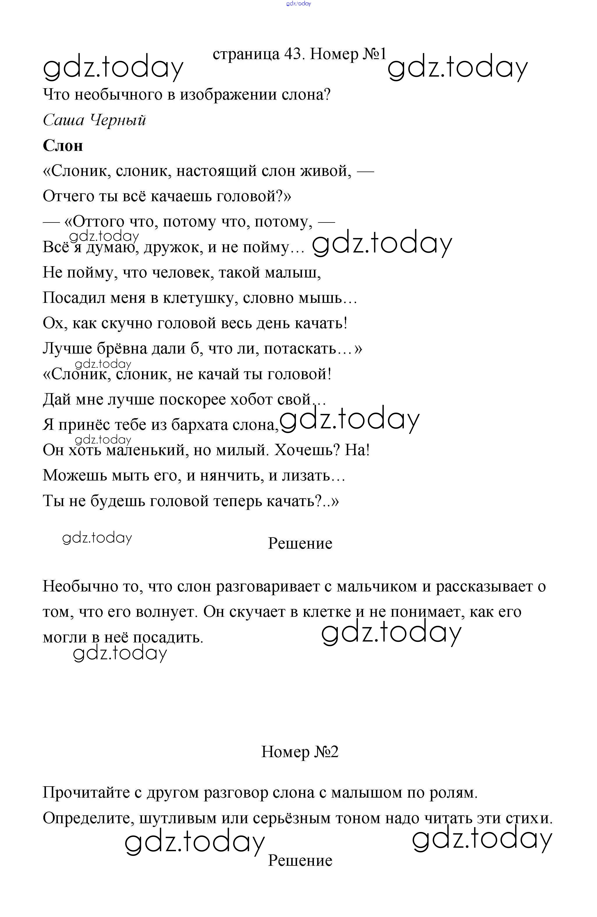 На страницах сайта gdz.today вы найдете учебный и вспомогательный материал, направленный на улучшения знаний школьной программы. ГДЗ - онлайн мир знаний Ршение к части 2 (Страницы) 43 Учебнику по Литературному чтению для 3 класса Климанова, Горецкий Просвещение Школа России 2020