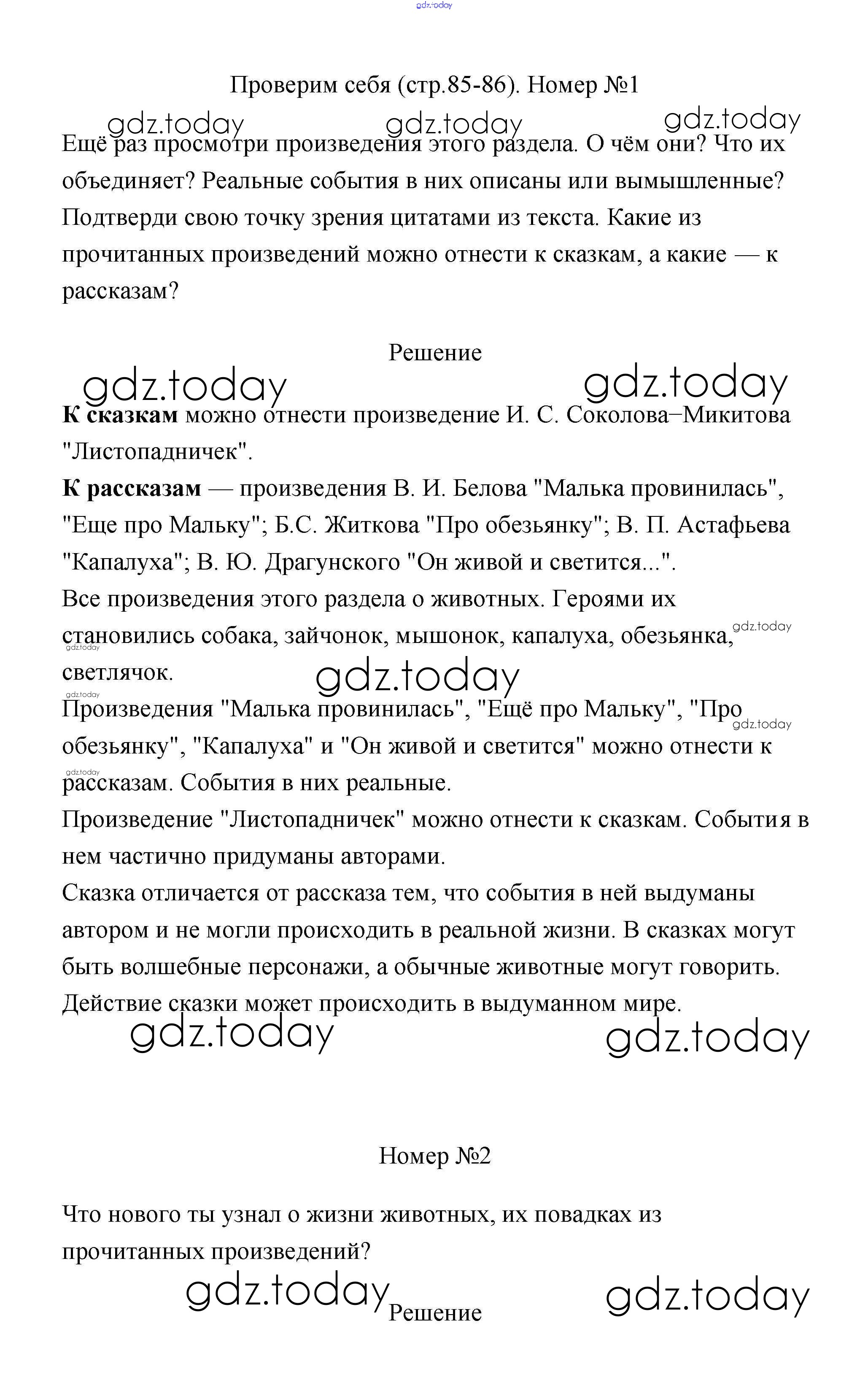 На страницах сайта gdz.today вы найдете учебный и вспомогательный материал, направленный на улучшения знаний школьной программы. ГДЗ - онлайн мир знаний Ршение к части 2 (Страницы) 85 Учебнику по Литературному чтению для 3 класса Климанова, Горецкий Просвещение Школа России 2020