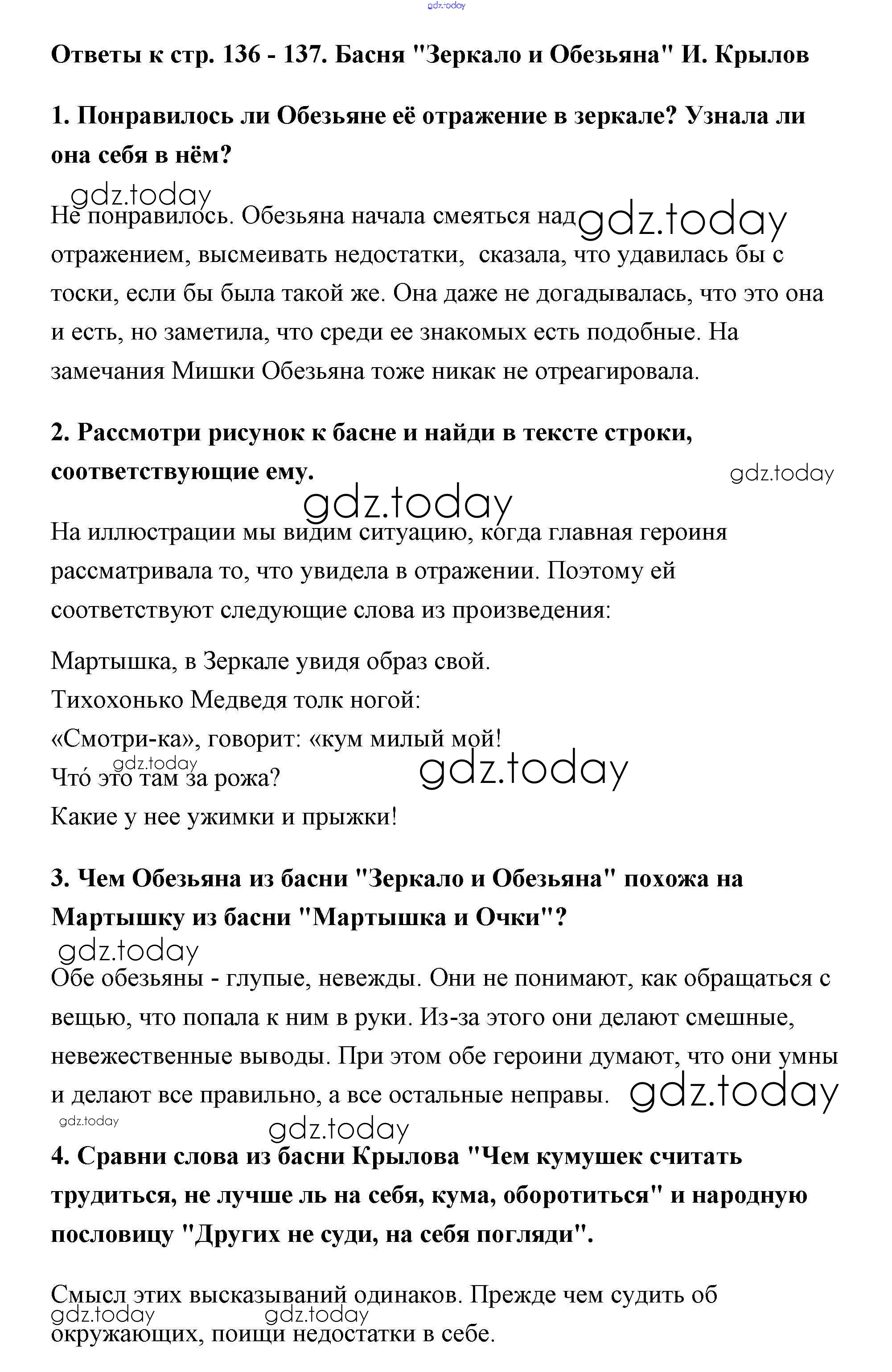 На страницах сайта gdz.today вы найдете учебный и вспомогательный материал, направленный на улучшения знаний школьной программы. ГДЗ - онлайн мир знаний Решение к части 1 (Страницы) 136-137 Учебнику по Литературному чтению для 3 класса Климанова, Горецкий Просвещение Школа России 2018
