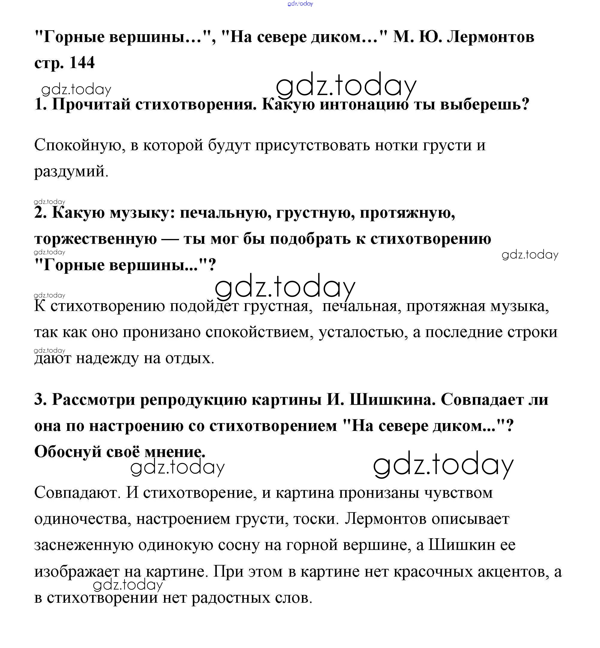 На страницах сайта gdz.today вы найдете учебный и вспомогательный материал, направленный на улучшения знаний школьной программы. ГДЗ - онлайн мир знаний Решение к части 1 (Страницы) 144 Учебнику по Литературному чтению для 3 класса Климанова, Горецкий Просвещение Школа России 2018