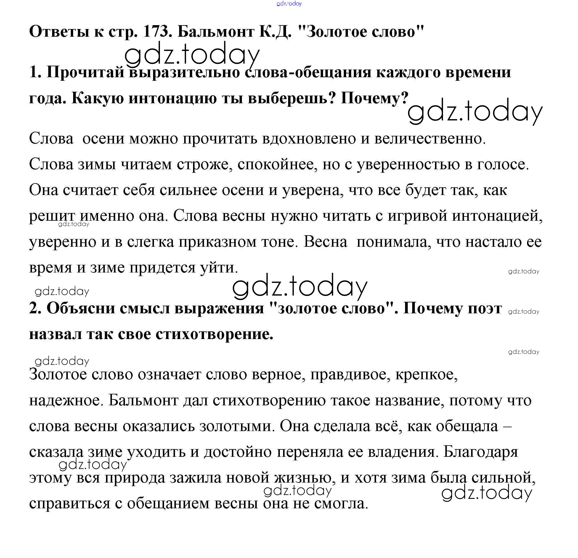 На страницах сайта gdz.today вы найдете учебный и вспомогательный материал, направленный на улучшения знаний школьной программы. ГДЗ - онлайн мир знаний Решение к части 1 (Страницы) 173 Учебнику по Литературному чтению для 3 класса Климанова, Горецкий Просвещение Школа России 2018