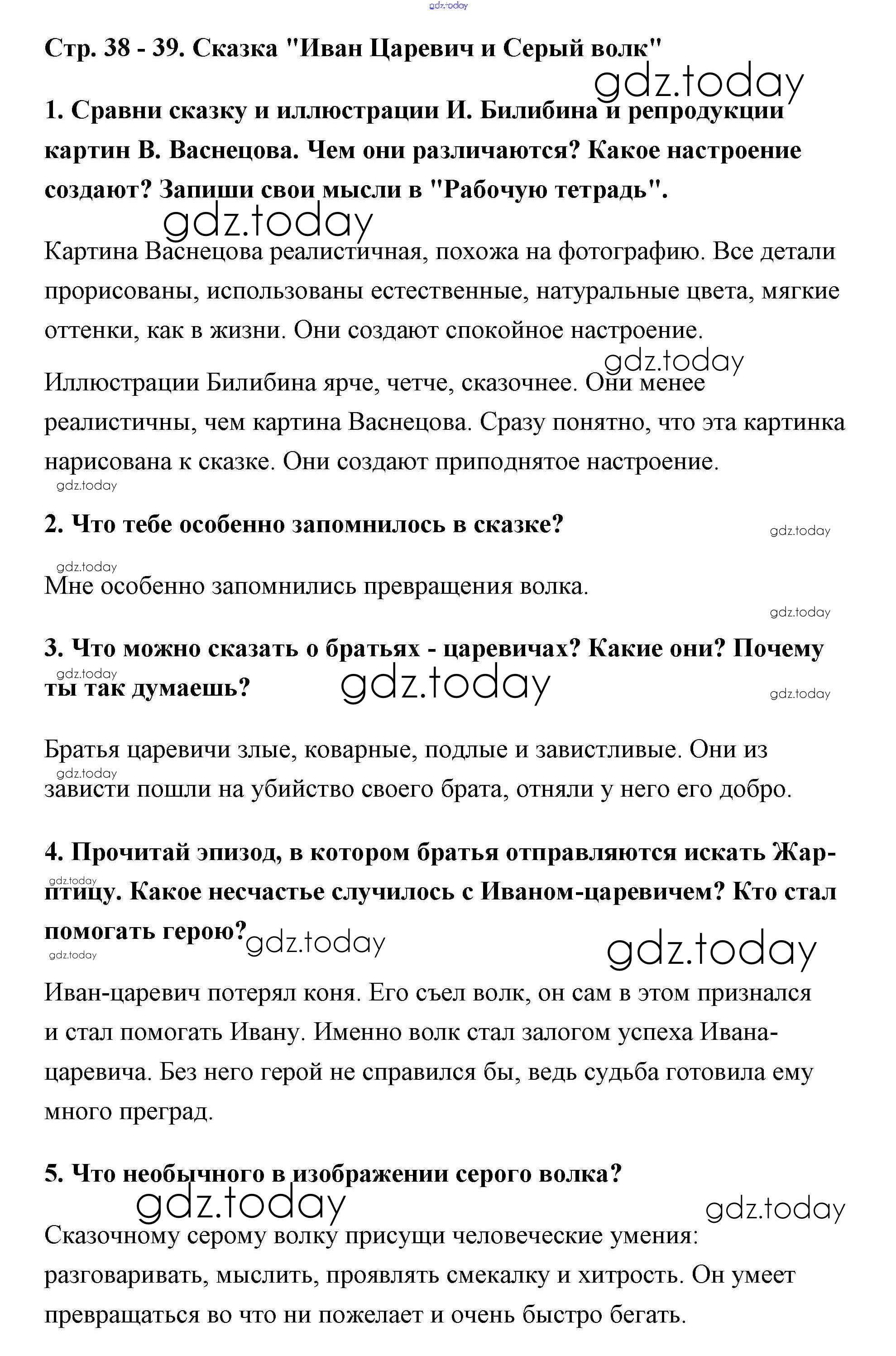 Ответы к Решение к части 1 (Страницы) 38-39 Учебнику по Литературному чтению для 3 класса Климанова, Горецкий Просвещение Школа России 2018