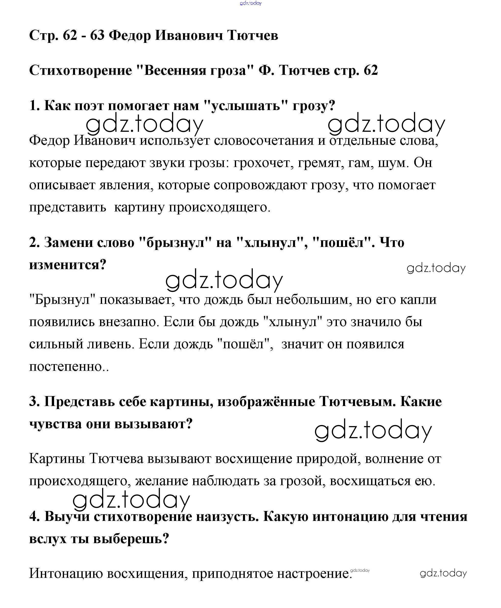 Ответы к Решение к части 1 (Страницы) 62 Учебнику по Литературному чтению для 3 класса Климанова, Горецкий Просвещение Школа России 2018