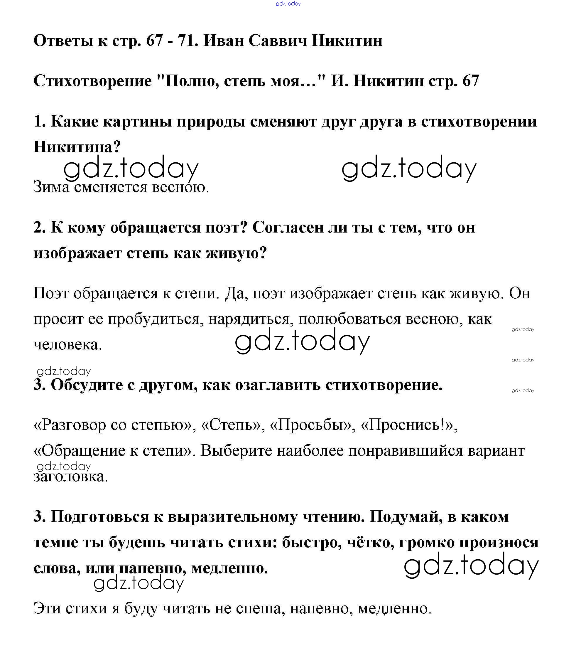 Ответы к Решение к части 1 (Страницы) 67-71 Учебнику по Литературному чтению для 3 класса Климанова, Горецкий Просвещение Школа России 2018
