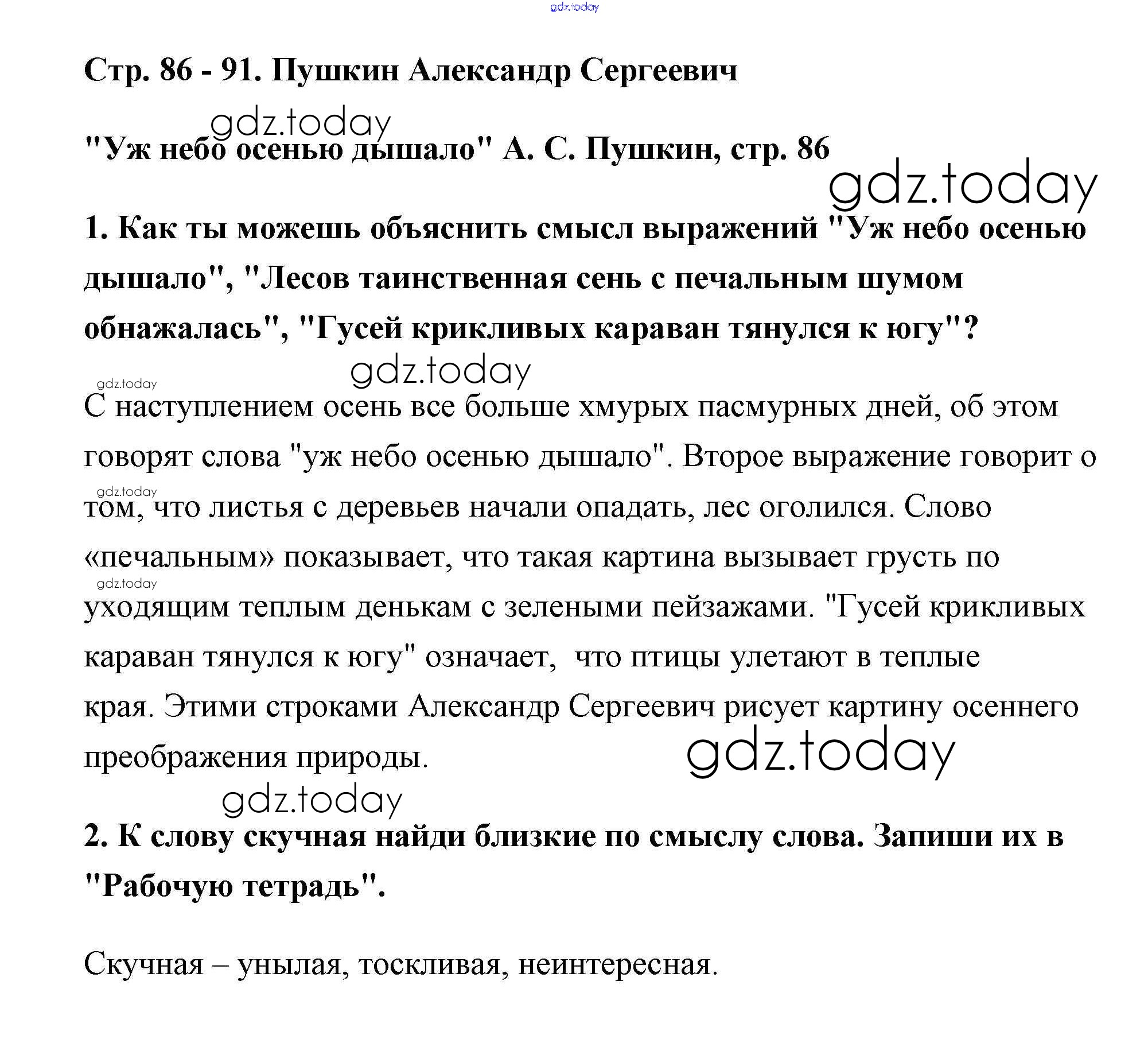 На страницах сайта gdz.today вы найдете учебный и вспомогательный материал, направленный на улучшения знаний школьной программы. ГДЗ - онлайн мир знаний Решение к части 1 (Страницы) 86 Учебнику по Литературному чтению для 3 класса Климанова, Горецкий Просвещение Школа России 2018