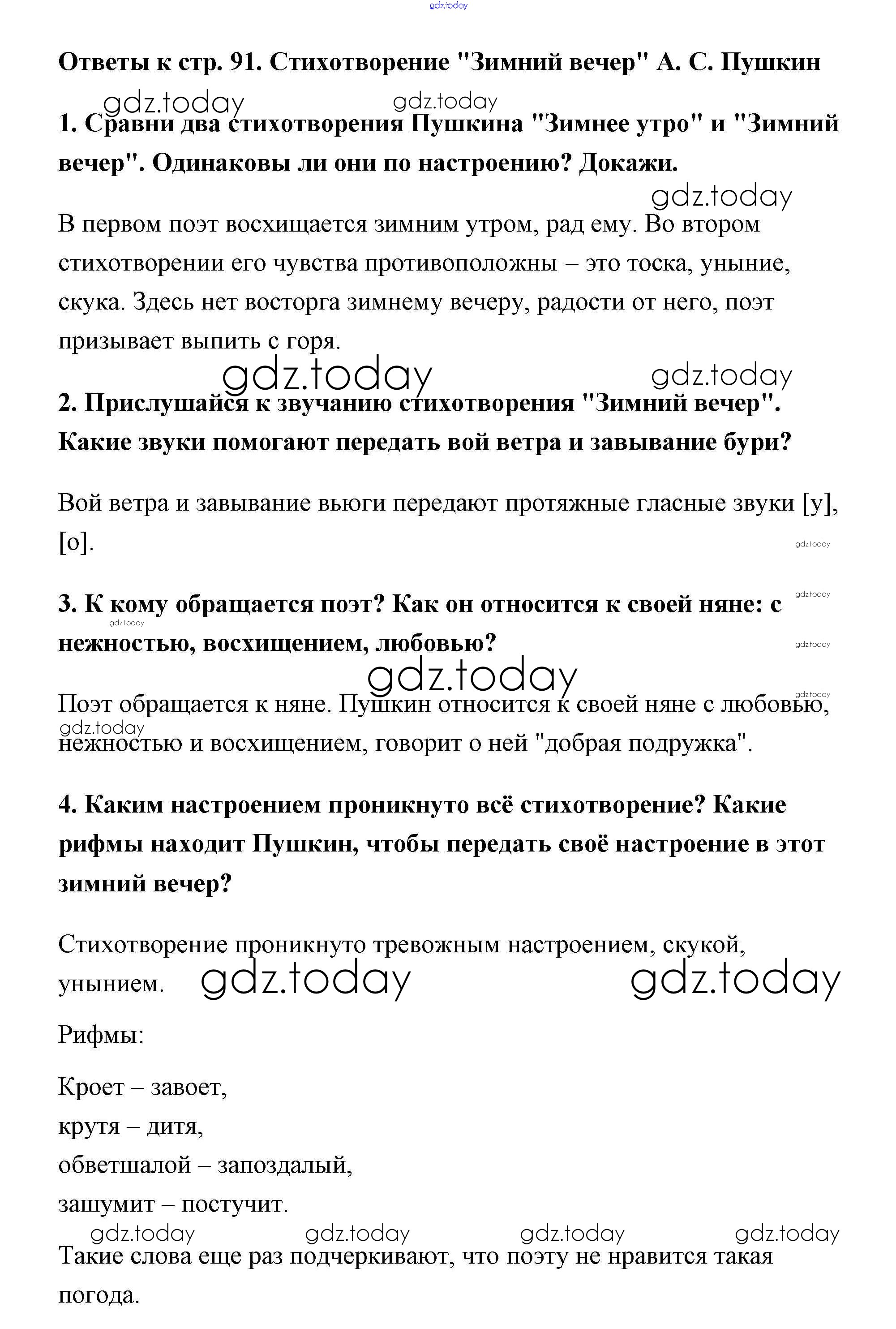 Ответы к Решение к части 1 (Страницы) 91 Учебнику по Литературному чтению для 3 класса Климанова, Горецкий Просвещение Школа России 2018