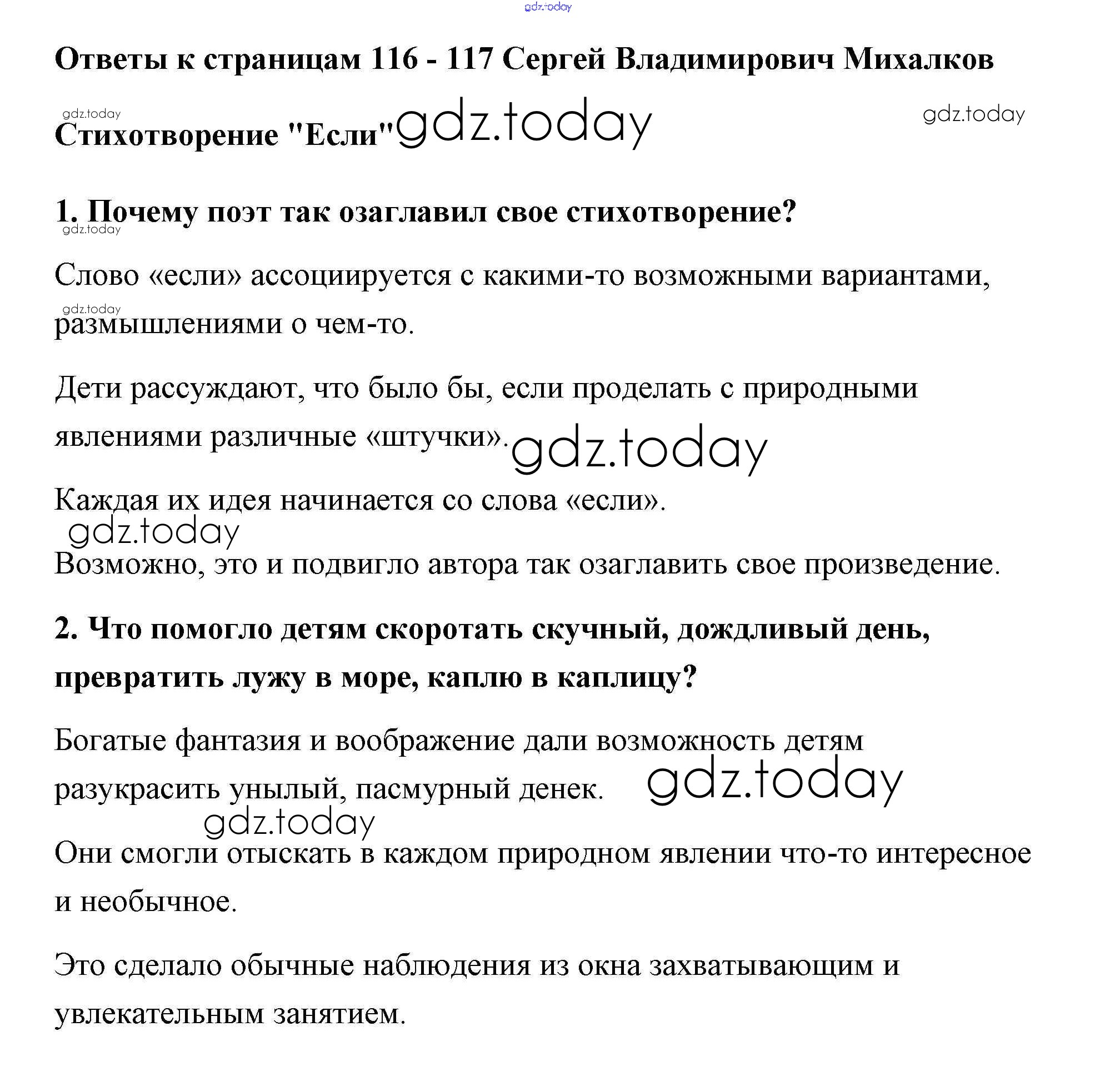 На страницах сайта gdz.today вы найдете учебный и вспомогательный материал, направленный на улучшения знаний школьной программы. ГДЗ - онлайн мир знаний Решение к части 2 (Страницы) 116-117 Учебнику по Литературному чтению для 3 класса Климанова, Горецкий Просвещение Школа России 2018
