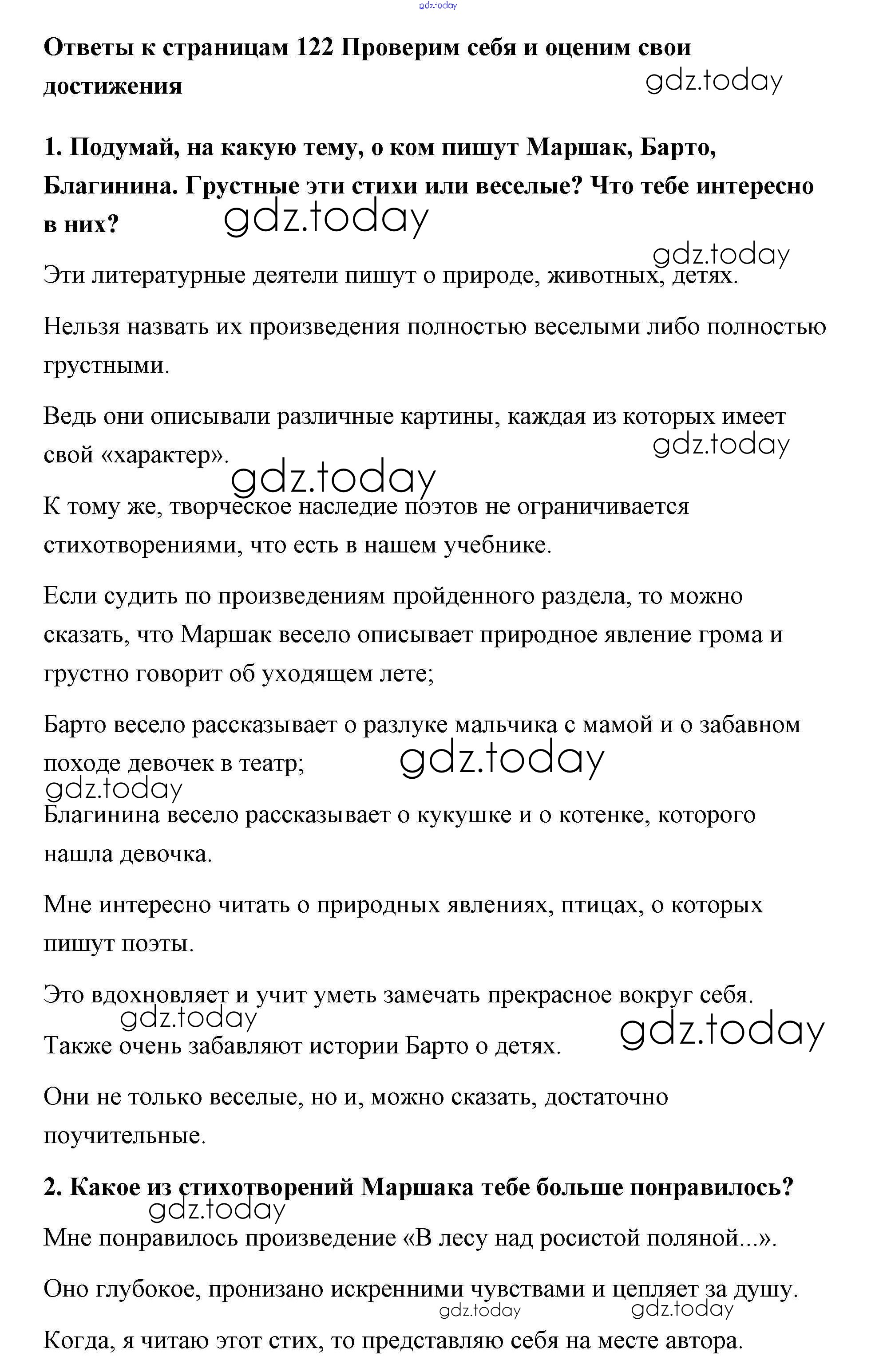 На страницах сайта gdz.today вы найдете учебный и вспомогательный материал, направленный на улучшения знаний школьной программы. ГДЗ - онлайн мир знаний Решение к части 2 (Страницы) 122 Учебнику по Литературному чтению для 3 класса Климанова, Горецкий Просвещение Школа России 2018