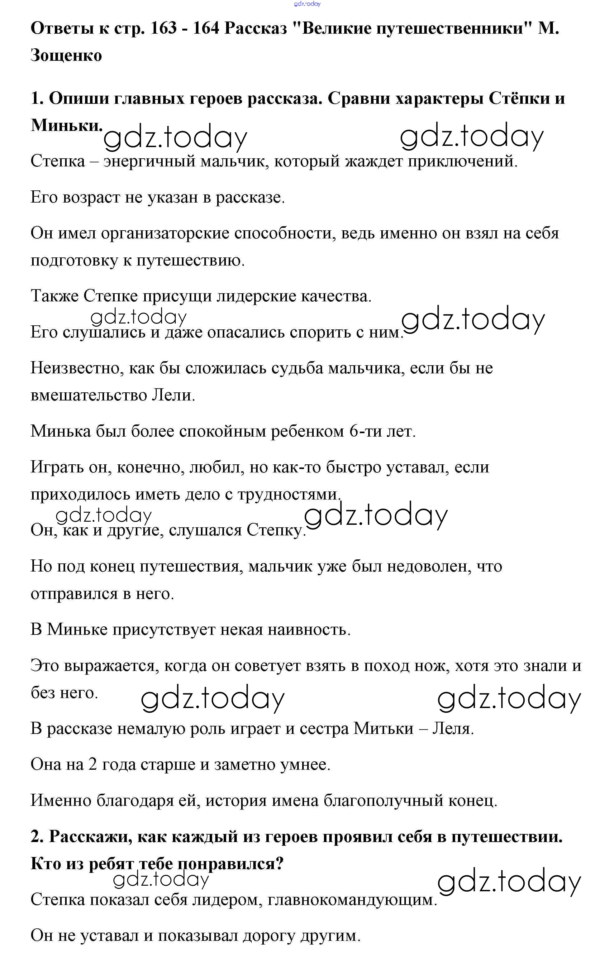 На страницах сайта gdz.today вы найдете учебный и вспомогательный материал, направленный на улучшения знаний школьной программы. ГДЗ - онлайн мир знаний Решение к части 2 (Страницы) 163-164 Учебнику по Литературному чтению для 3 класса Климанова, Горецкий Просвещение Школа России 2018