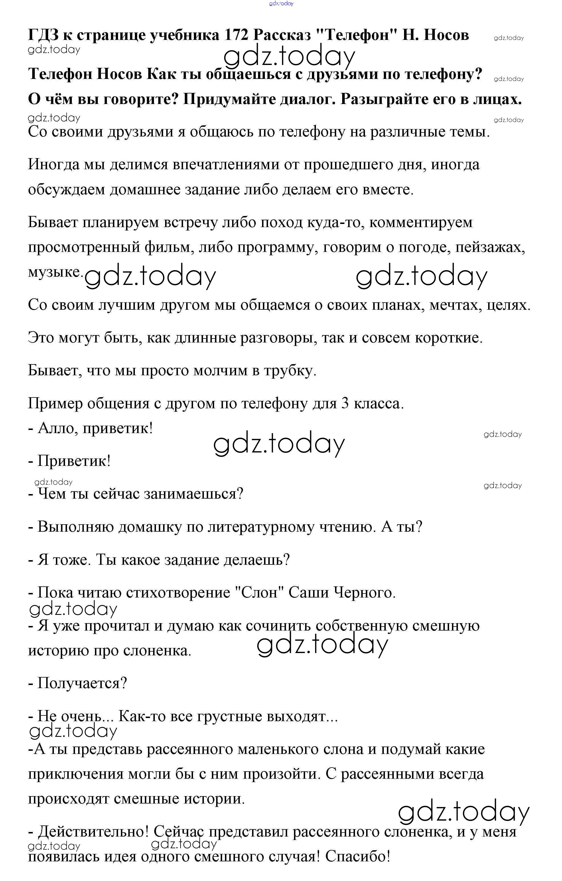 На страницах сайта gdz.today вы найдете учебный и вспомогательный материал, направленный на улучшения знаний школьной программы. ГДЗ - онлайн мир знаний Решение к части 2 (Страницы) 172 Учебнику по Литературному чтению для 3 класса Климанова, Горецкий Просвещение Школа России 2018
