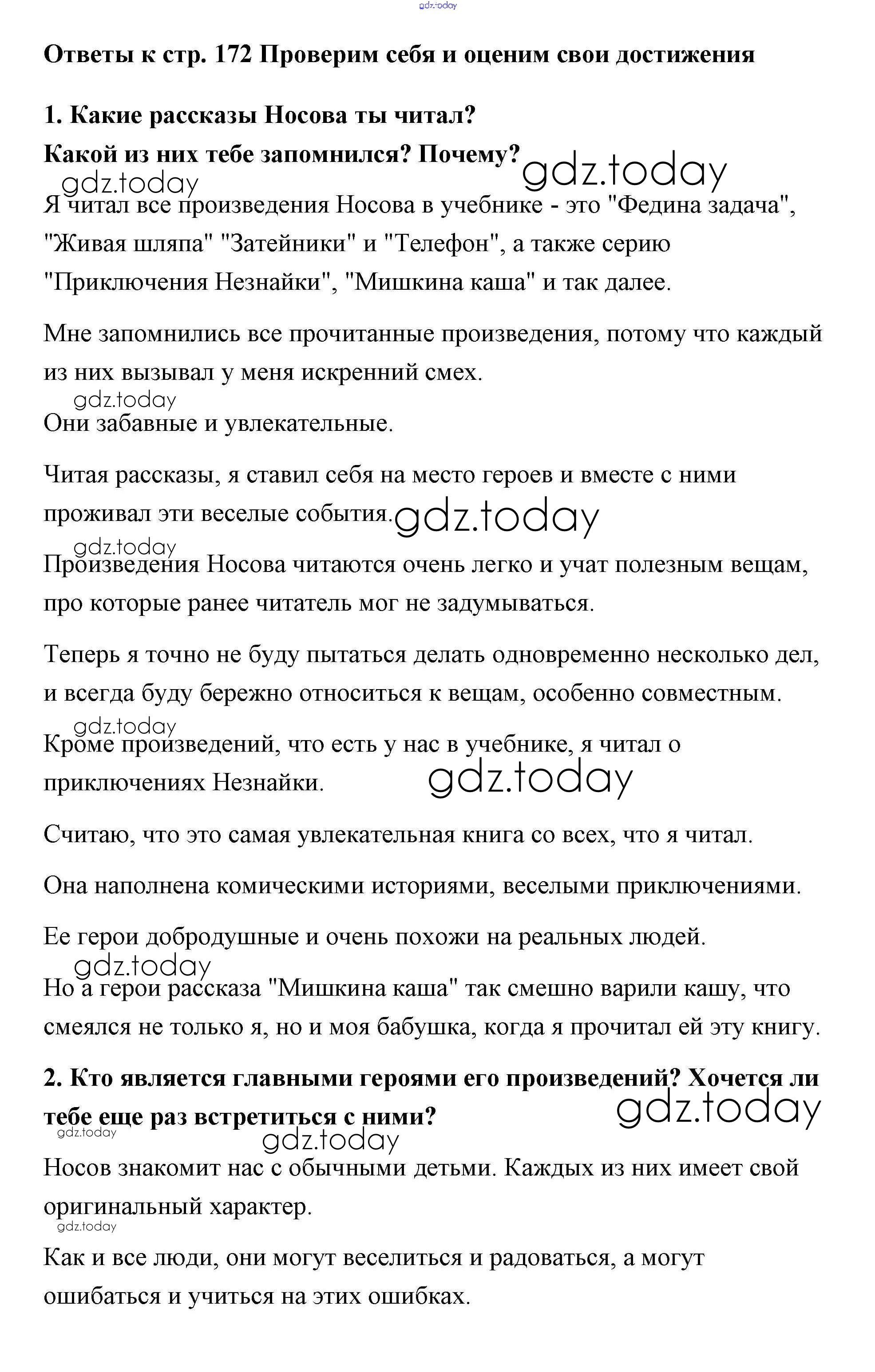 Ответы к Решение к части 2 (Страницы) 172 Учебнику по Литературному чтению для 3 класса Климанова, Горецкий Просвещение Школа России 2018