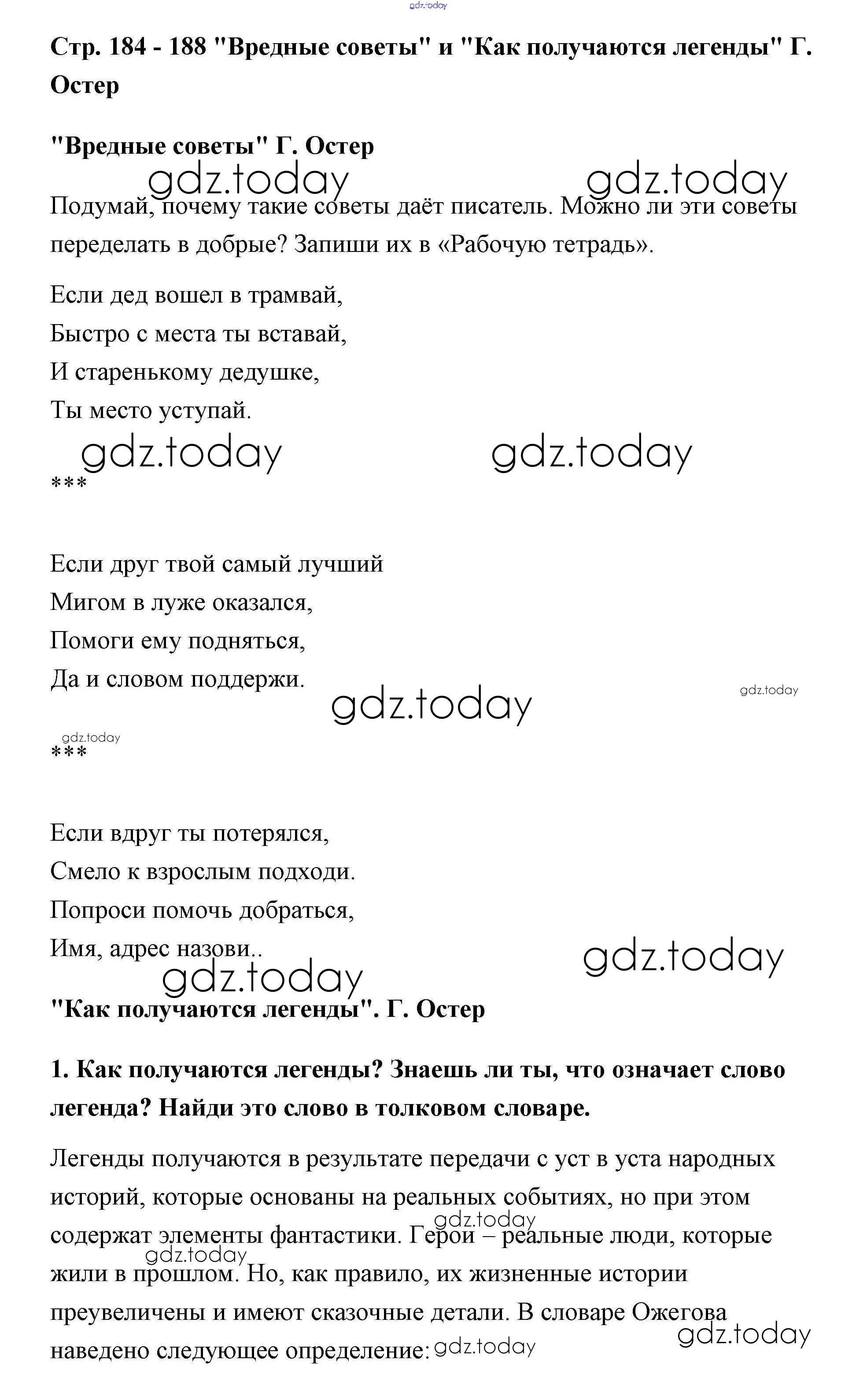 На страницах сайта gdz.today вы найдете учебный и вспомогательный материал, направленный на улучшения знаний школьной программы. ГДЗ - онлайн мир знаний Решение к части 2 (Страницы) 184 Учебнику по Литературному чтению для 3 класса Климанова, Горецкий Просвещение Школа России 2018
