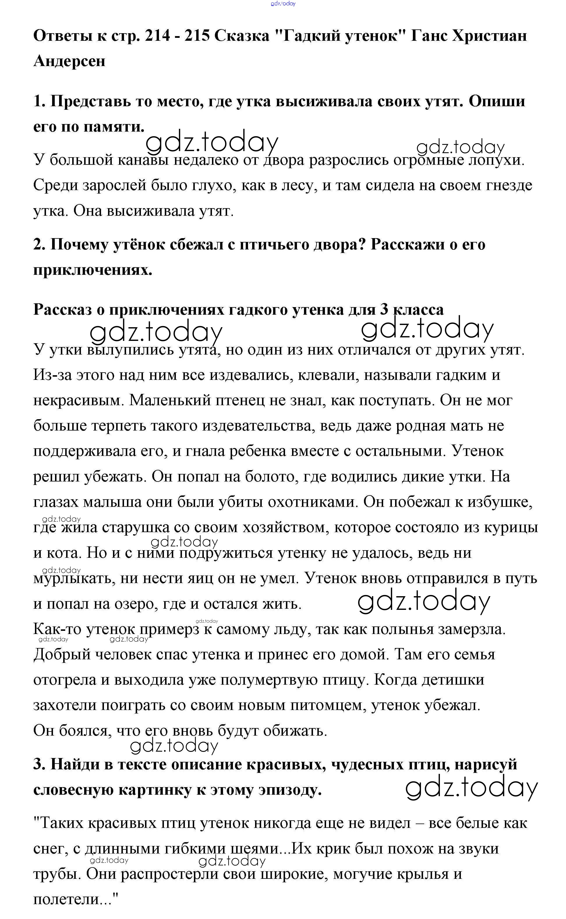 На страницах сайта gdz.today вы найдете учебный и вспомогательный материал, направленный на улучшения знаний школьной программы. ГДЗ - онлайн мир знаний Решение к части 2 (Страницы) 214 Учебнику по Литературному чтению для 3 класса Климанова, Горецкий Просвещение Школа России 2018