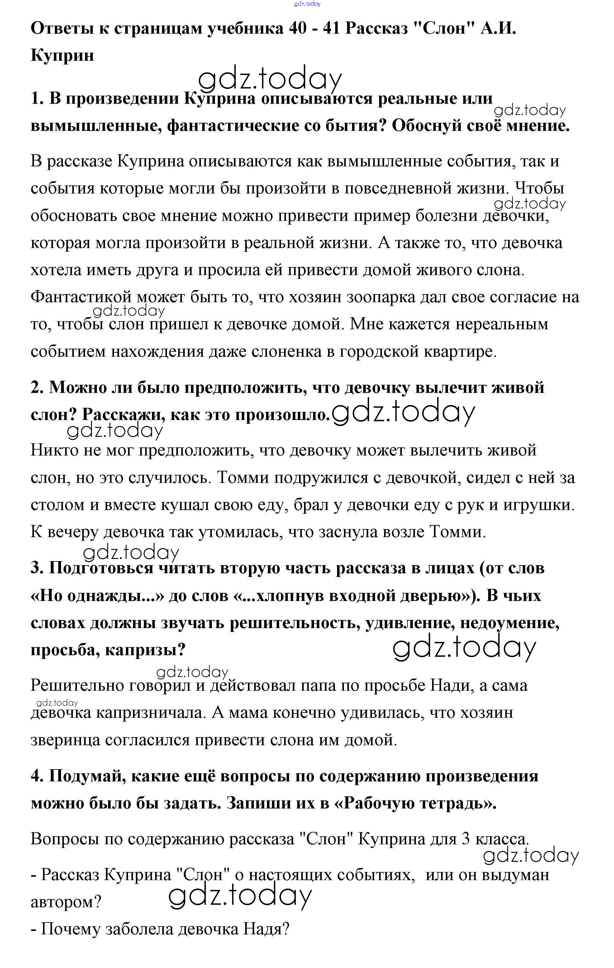 На страницах сайта gdz.today вы найдете учебный и вспомогательный материал, направленный на улучшения знаний школьной программы. ГДЗ - онлайн мир знаний Решение к части 2 (Страницы) 40-41 Учебнику по Литературному чтению для 3 класса Климанова, Горецкий Просвещение Школа России 2018