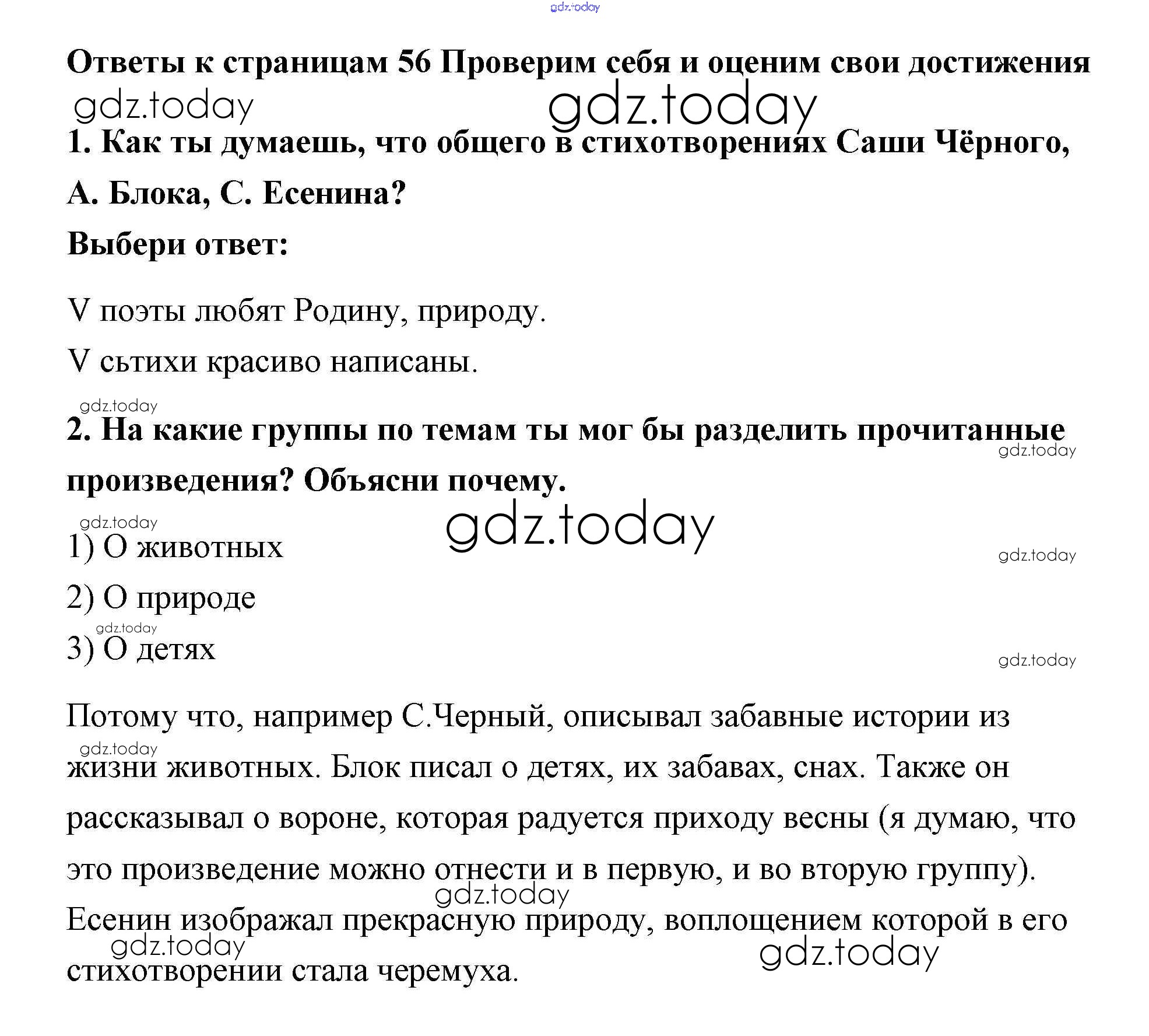 На страницах сайта gdz.today вы найдете учебный и вспомогательный материал, направленный на улучшения знаний школьной программы. ГДЗ - онлайн мир знаний Решение к части 2 (Страницы) 56 Учебнику по Литературному чтению для 3 класса Климанова, Горецкий Просвещение Школа России 2018