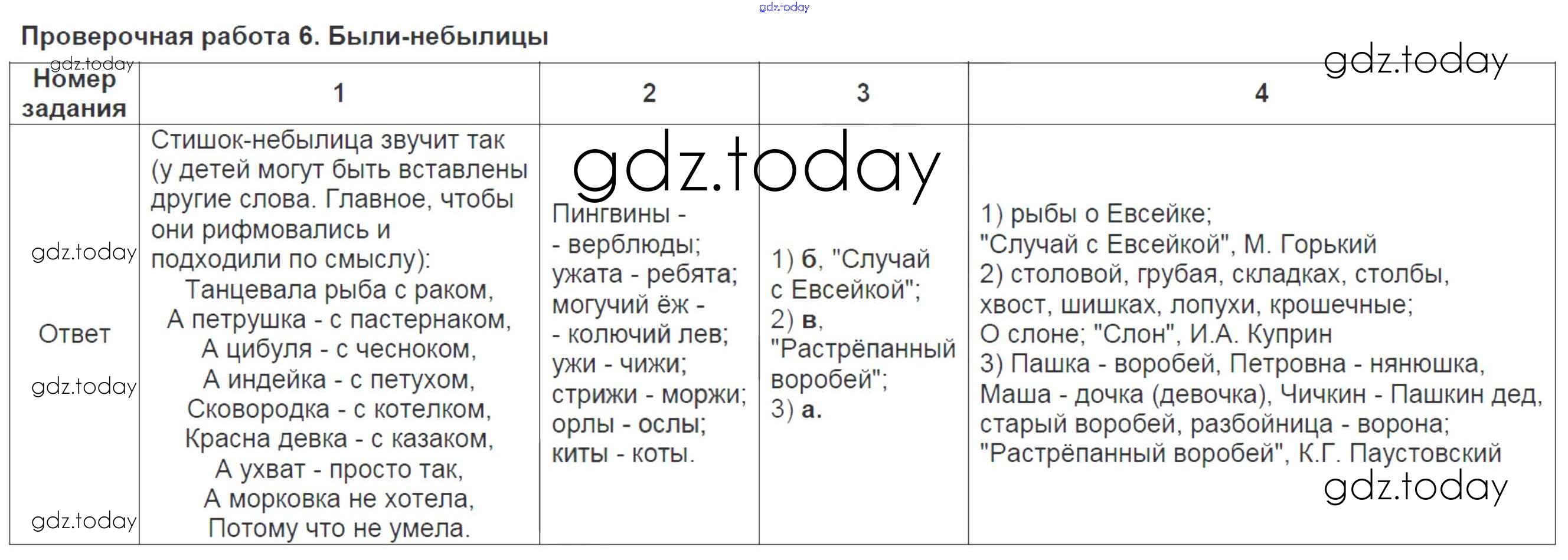 На страницах сайта gdz.today вы найдете учебный и вспомогательный материал, направленный на улучшения знаний школьной программы. ГДЗ - онлайн мир знаний Решение к проверочным работам 6 Контрольно-измерительным материалам (КИМ) по Литературному чтению для 3 класса Кутявина ВАКО 2017