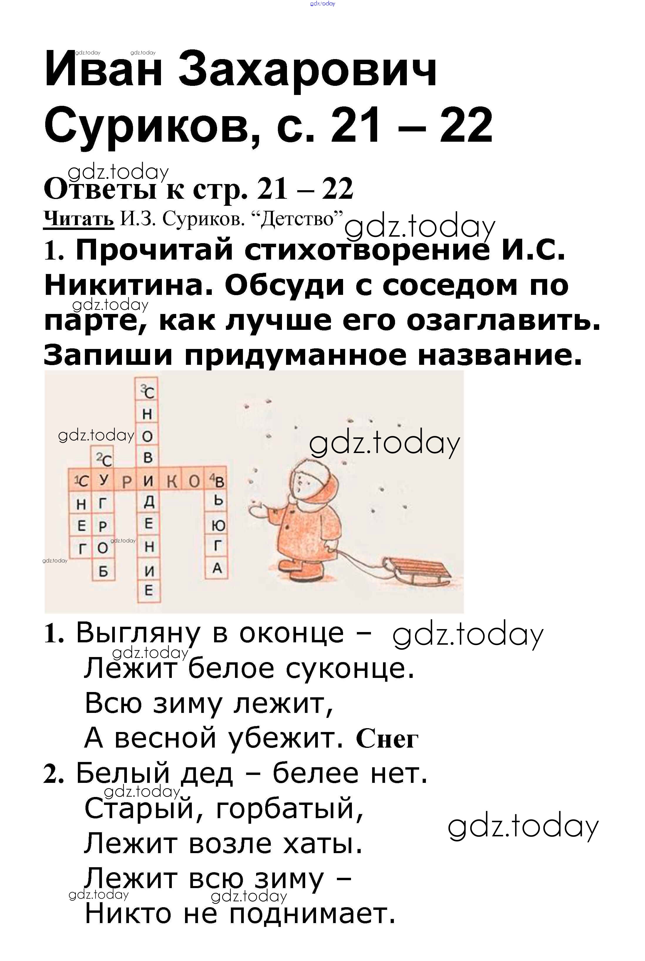 На страницах сайта gdz.today вы найдете учебный и вспомогательный материал, направленный на улучшения знаний школьной программы. ГДЗ - онлайн мир знаний Страницы (решение) 21-22 Рабочей тетради по Литературному чтению для 3 класса Кутявина ВАКО 2019
