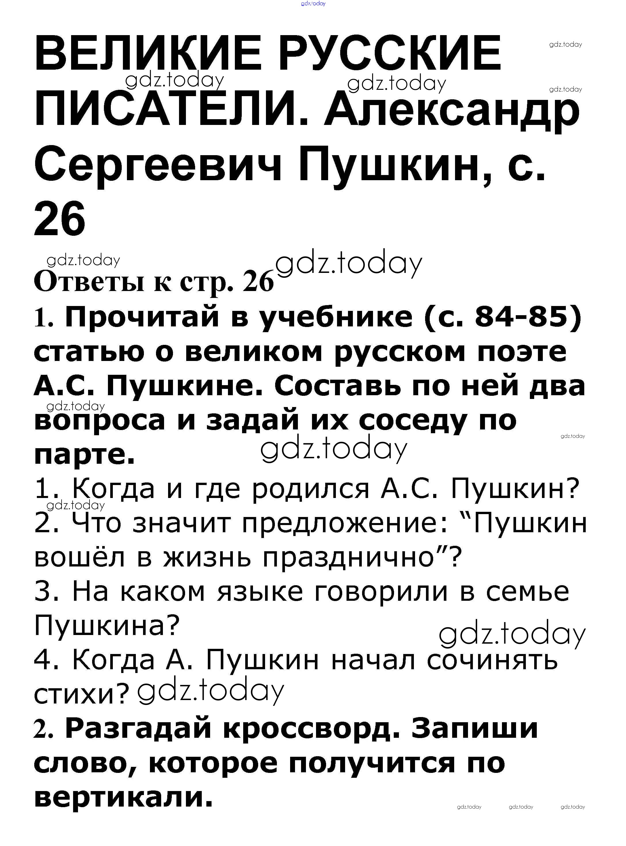 На страницах сайта gdz.today вы найдете учебный и вспомогательный материал, направленный на улучшения знаний школьной программы. ГДЗ - онлайн мир знаний Страницы (решение) 26 Рабочей тетради по Литературному чтению для 3 класса Кутявина ВАКО 2019