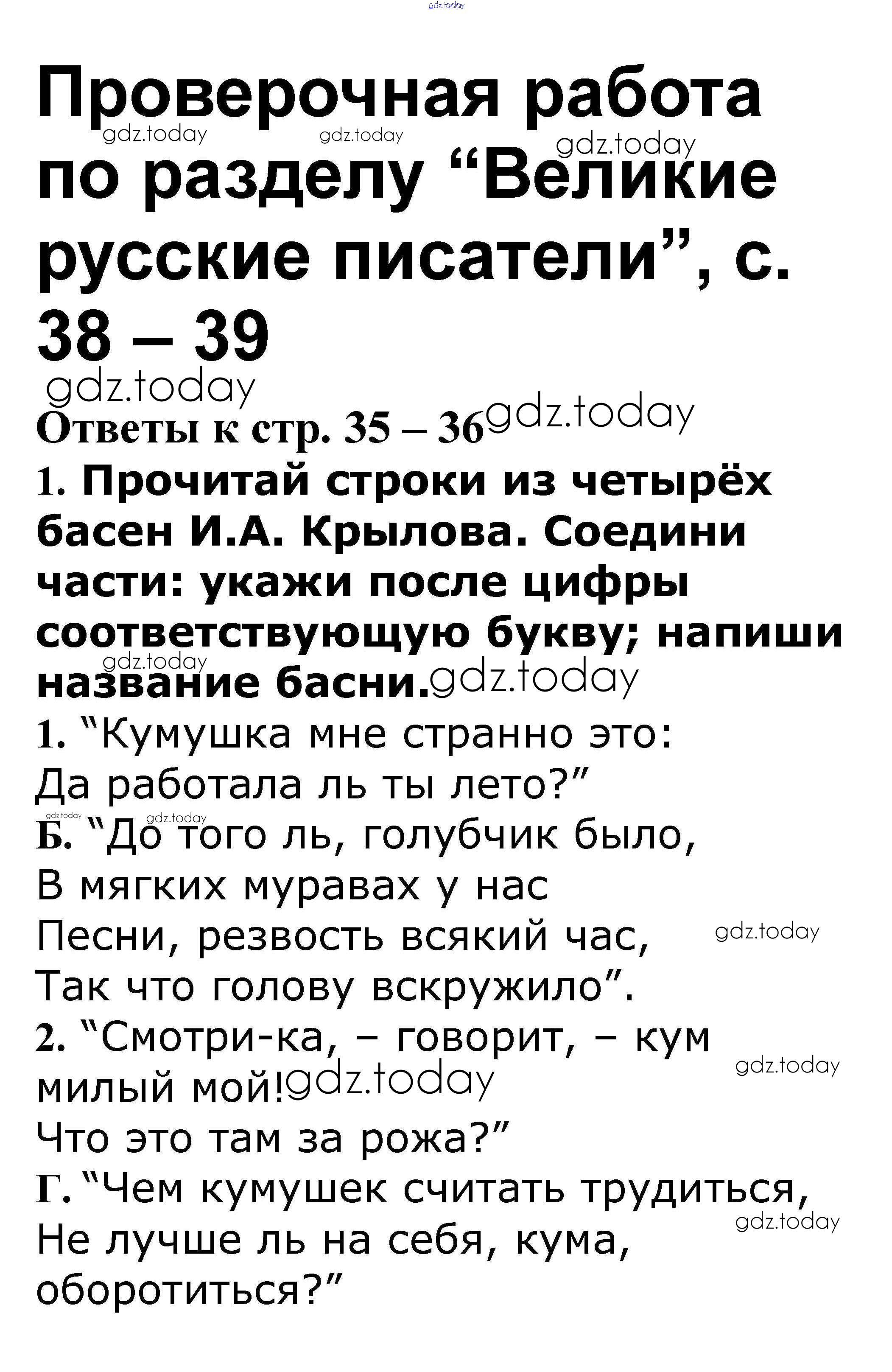 На страницах сайта gdz.today вы найдете учебный и вспомогательный материал, направленный на улучшения знаний школьной программы. ГДЗ - онлайн мир знаний Страницы (решение) 38-39 Рабочей тетради по Литературному чтению для 3 класса Кутявина ВАКО 2019