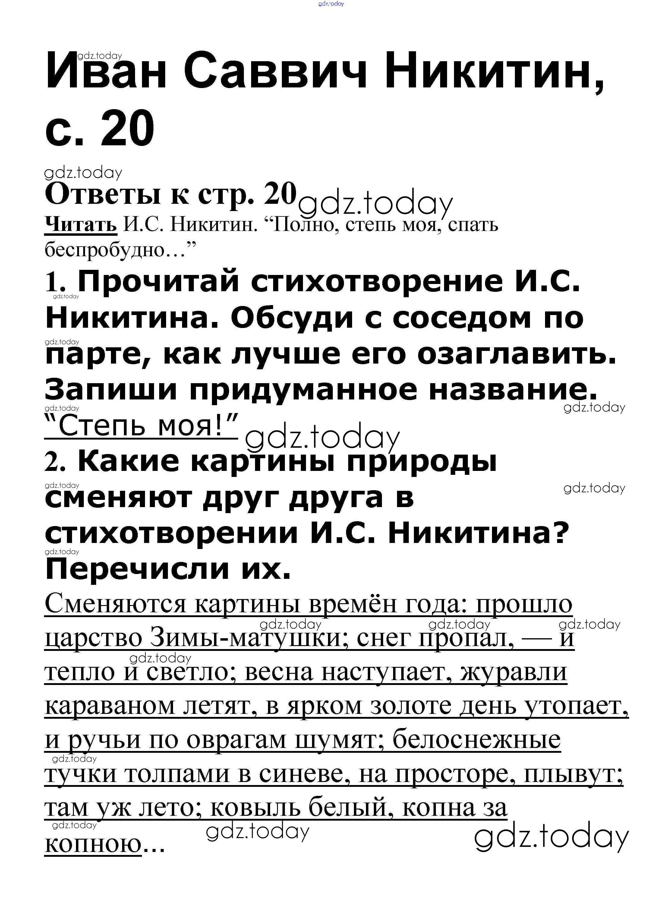 На страницах сайта gdz.today вы найдете учебный и вспомогательный материал, направленный на улучшения знаний школьной программы. ГДЗ - онлайн мир знаний Страницы (решение) 20 Рабочей тетради по Литературному чтению для 3 класса Кутявина ВАКО 2019