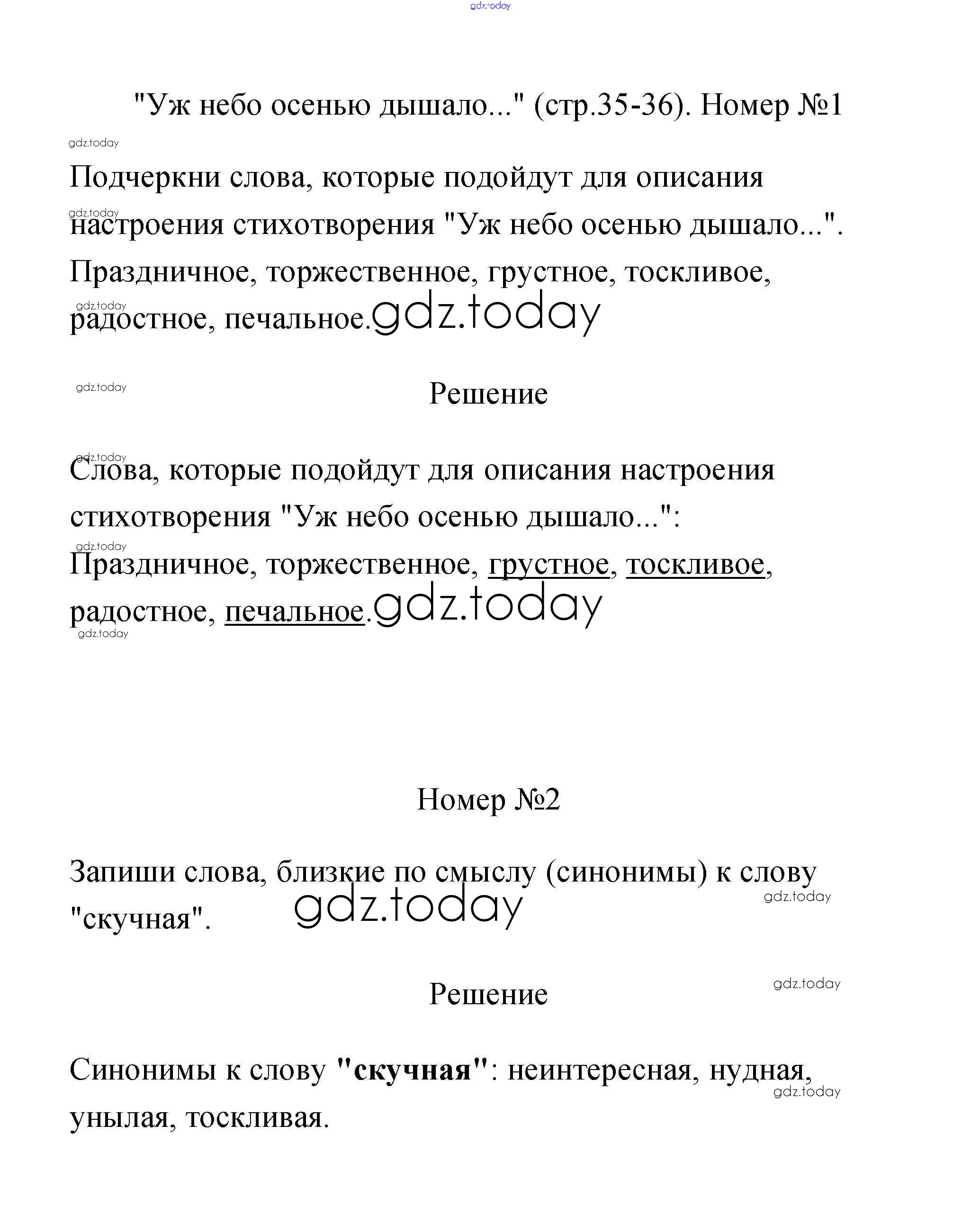 На страницах сайта gdz.today вы найдете учебный и вспомогательный материал, направленный на улучшения знаний школьной программы. ГДЗ - онлайн мир знаний Решение к части 1 (Страницы)  35 Рабочей тетради по Литературному чтению для 3 класса Тихомирова  Экзамен УМК 2021